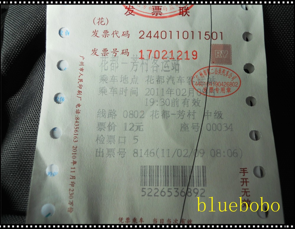行:初七早上我们八点半从花都 新华坐车到广州 芳村客运站,到芳村大概45分钟左右