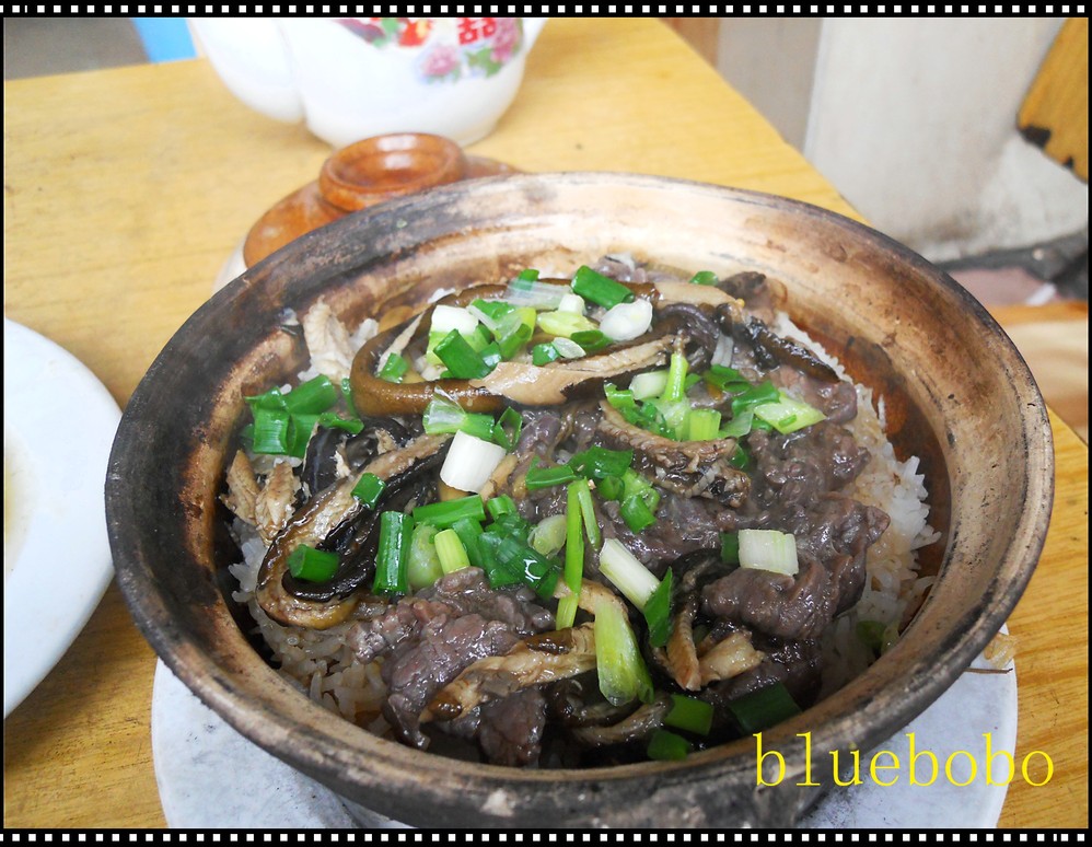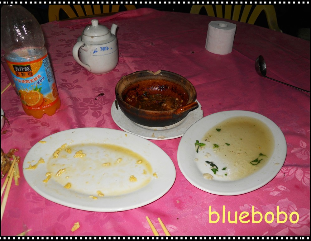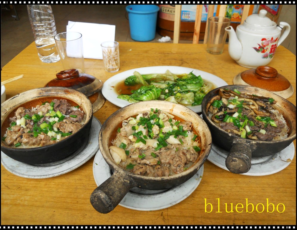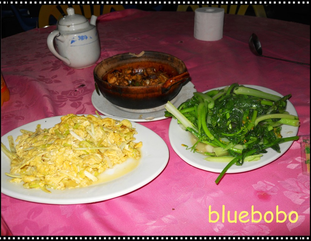 买完车票我们在开平 客运站附近的饭店吃煲仔饭,也是炒了一个蒜蓉生菜,哇,吃了第一口,我们第一个反应就是那些盐不用钱啊?这么咸,连煲仔饭的肉也是比较咸,不过煲仔饭觉得比赤坎的好吃,份量又多点,8-9块一个