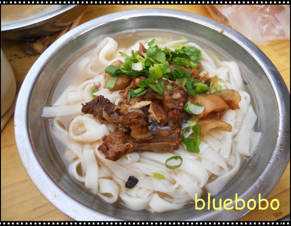 早餐我们咨询了一下旅馆老板有什么吃的,老板说过了桥一直走,然后在一间倒闭银行旁有牛腩粉吃,我们就过了赤坎人民公园对着的桥一直走,看到大参林药店,然后在药店旁的巷子见到很多人在吃早餐,估计应该是那里了。