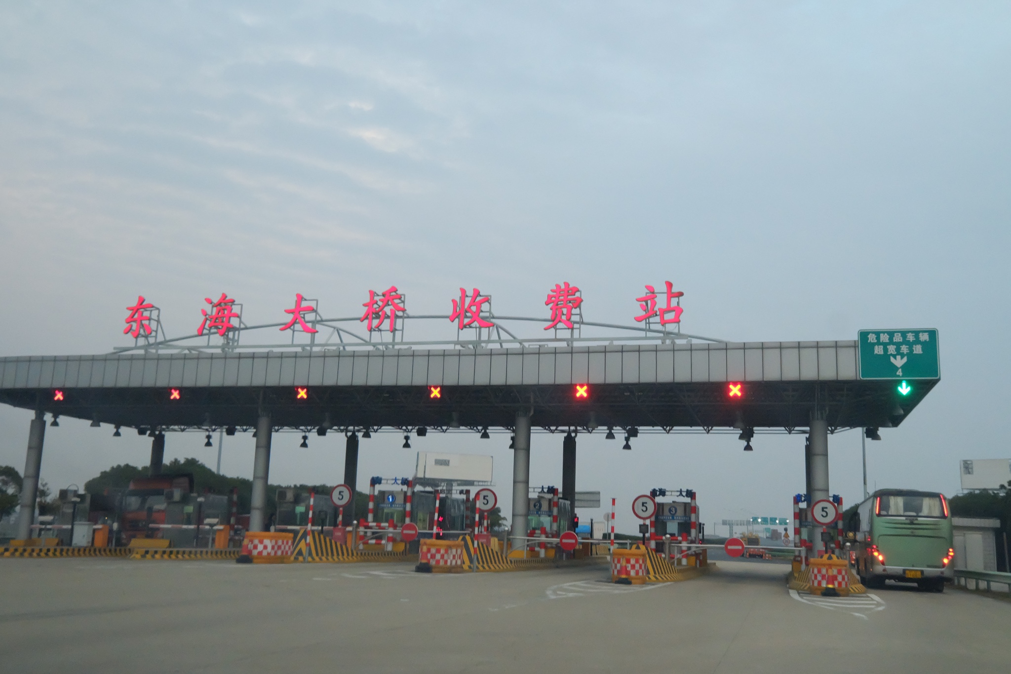 从上海市区通往东海大桥的高速并不需要收费,过东海大桥上桥前(下图)交20块钱过桥费。