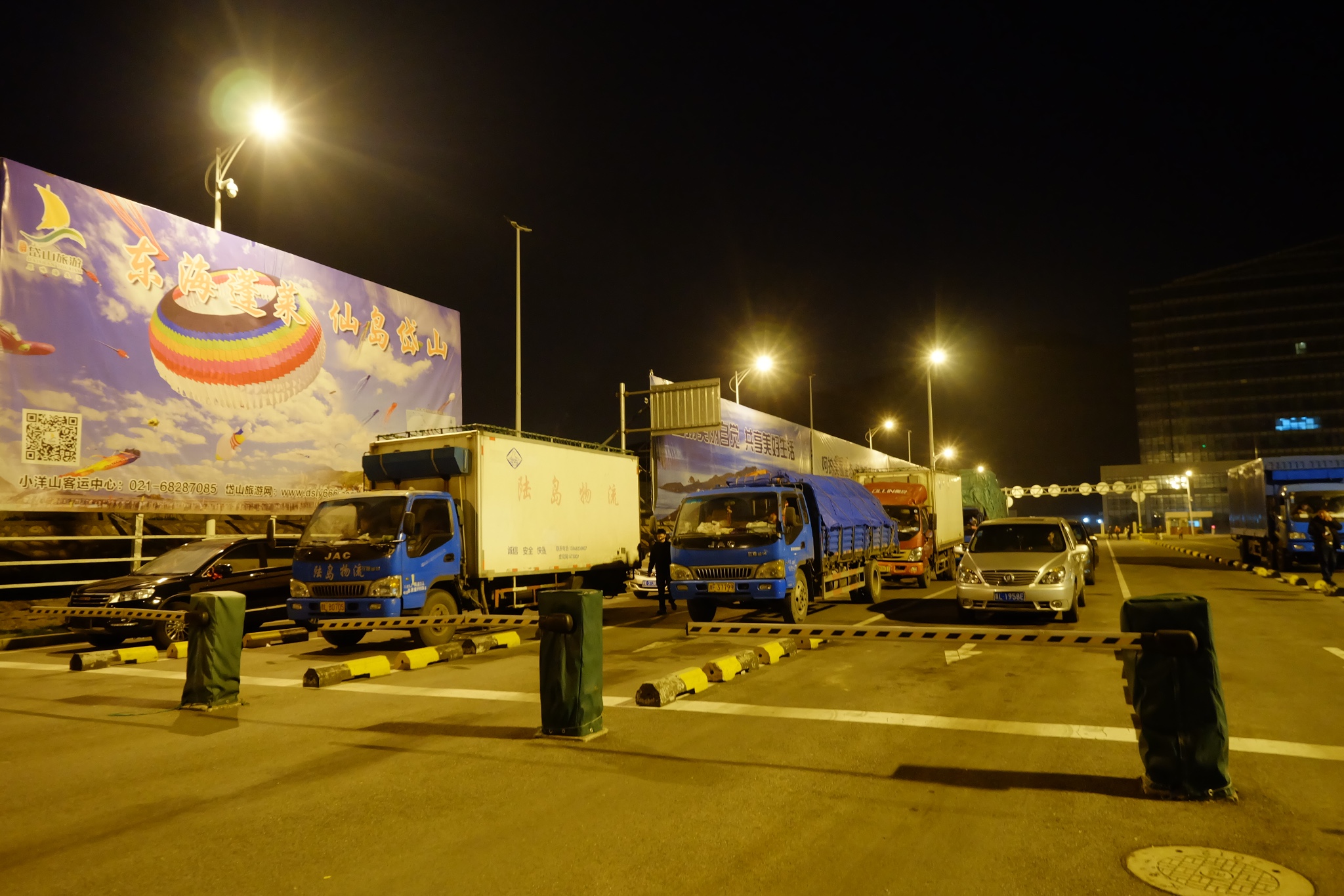 等着登船的大车小车。毛桑一路都很担忧会不会买不到票,事实证明这种担心完全是多余的。因为三月份实在是淡季中的淡季,我们六点一刻找到这个车渡售票点地时候前面大概有十几辆车在排队,当时听信网上传言以为一艘船只能渡25辆车,感觉十分庆幸,后来上船一看发现完全船仓是真的很大,估计能渡六七十艘船。船期每天都会更新在http://www.shengsi.gov.cn右下角‘嵊泗船期表’。现在从上海过去嵊泗能渡船的是三个轮次,上午下午晚上各一班。