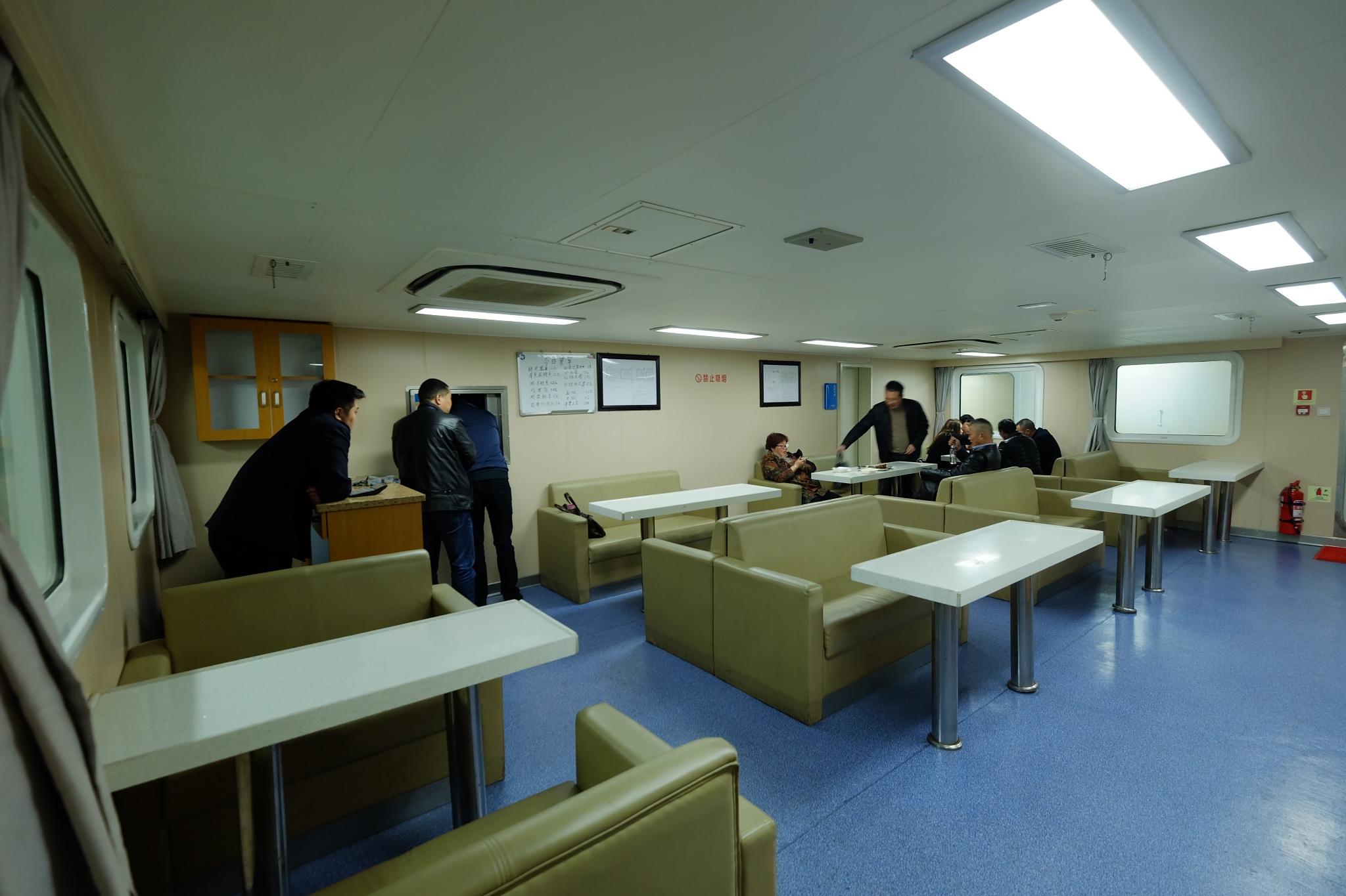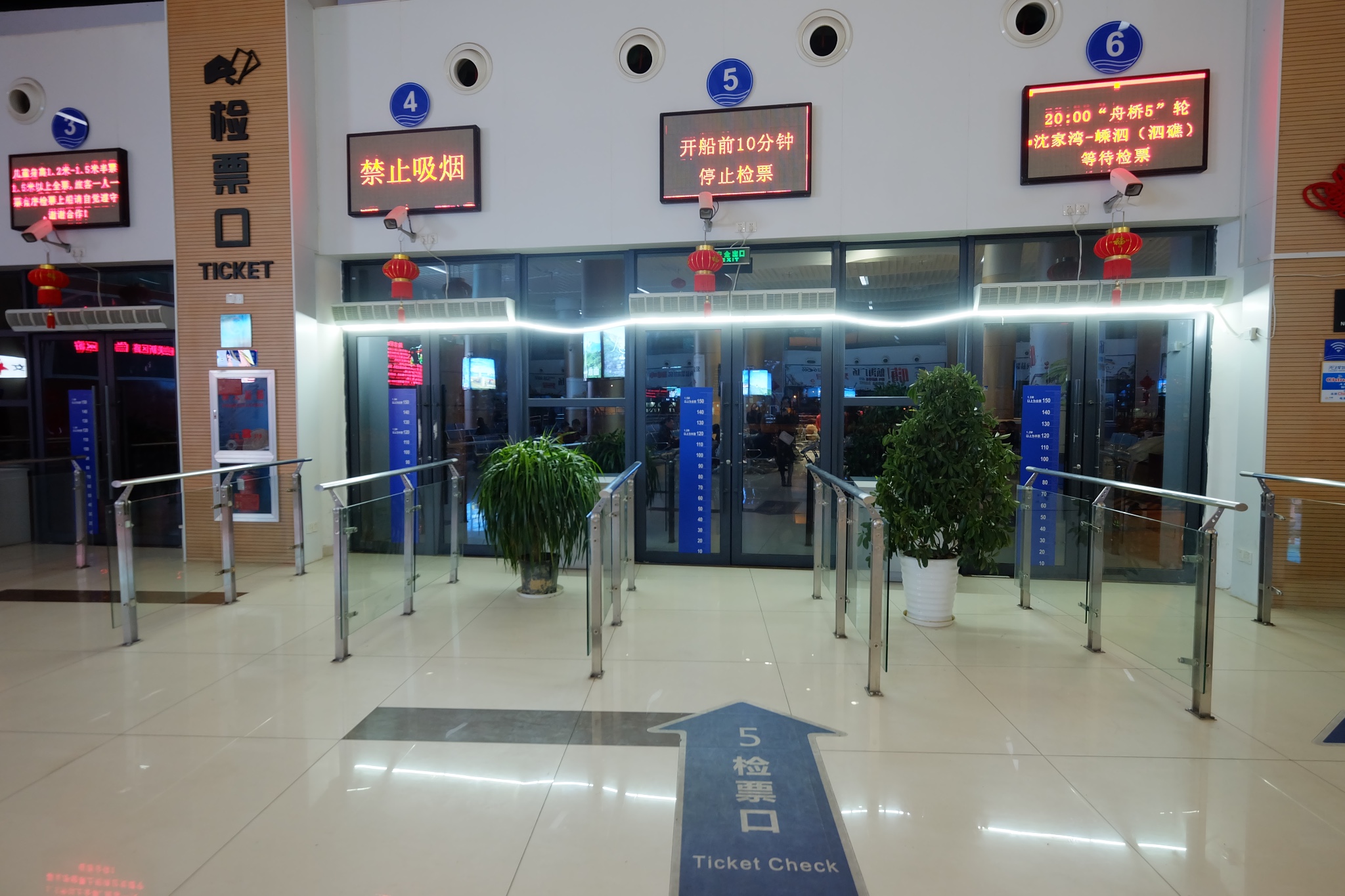 在沈家湾码头登船时,车上只能留一个司机,乘客都要去侯船大厅(下图)登船。