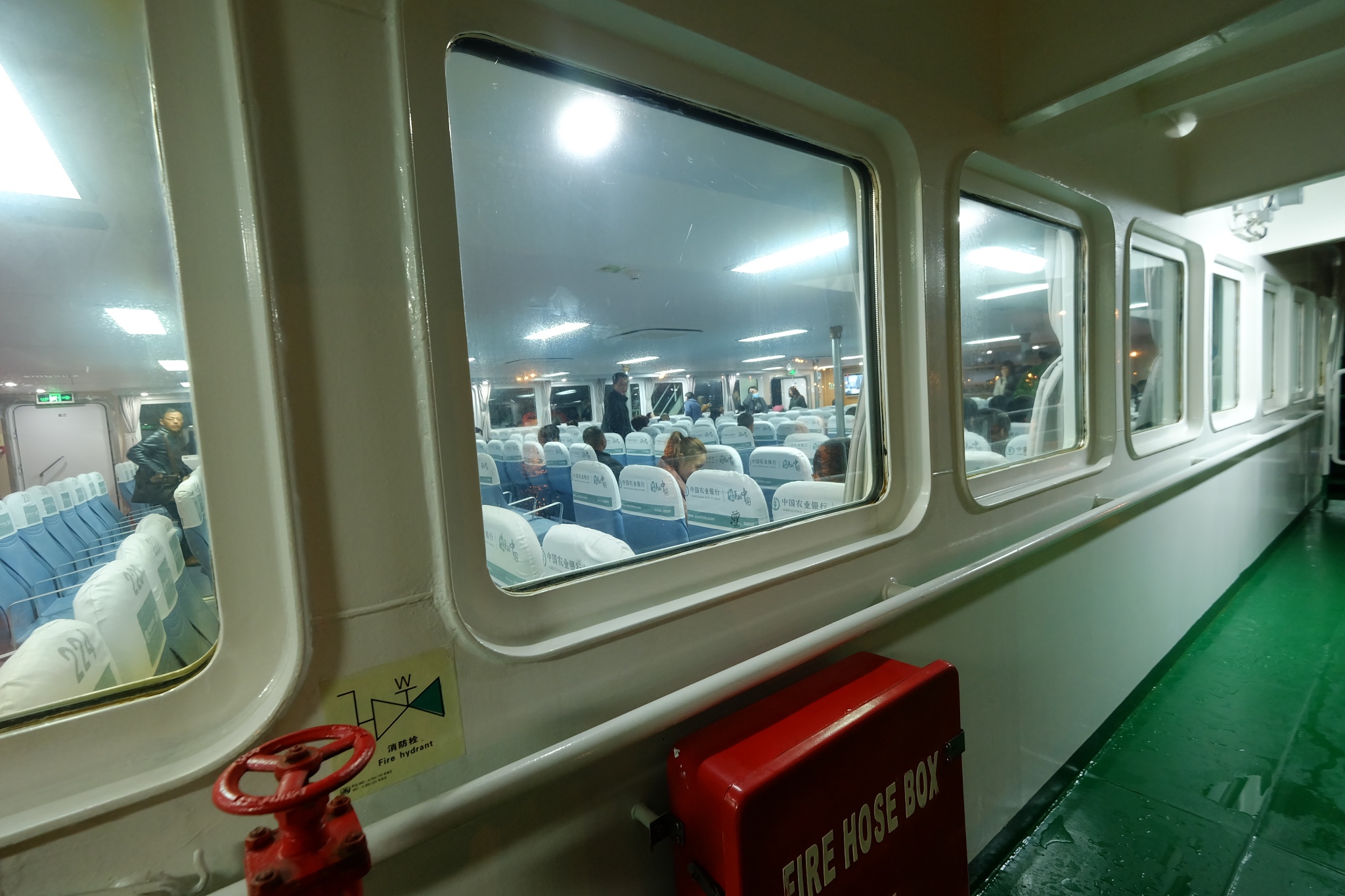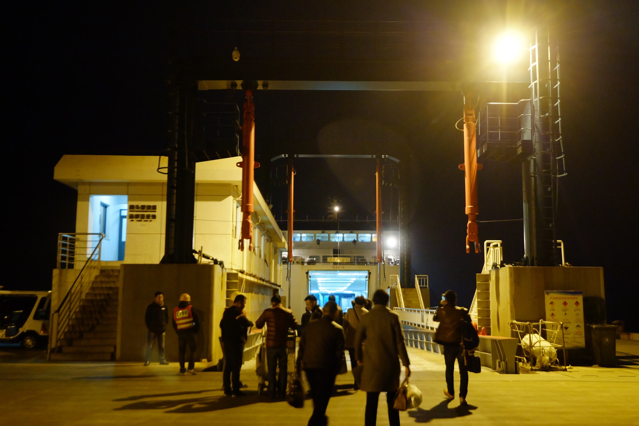 登船口。车和人其实都是从这个口进去的。车先上,毛桑上船理完东西到达客舱十分钟之后,乘客们开始上船了。从侯船大厅到入船口要走一段五分钟左右的路,是个长廊,两边都是嵊泗的旅游广告,非常tempting。