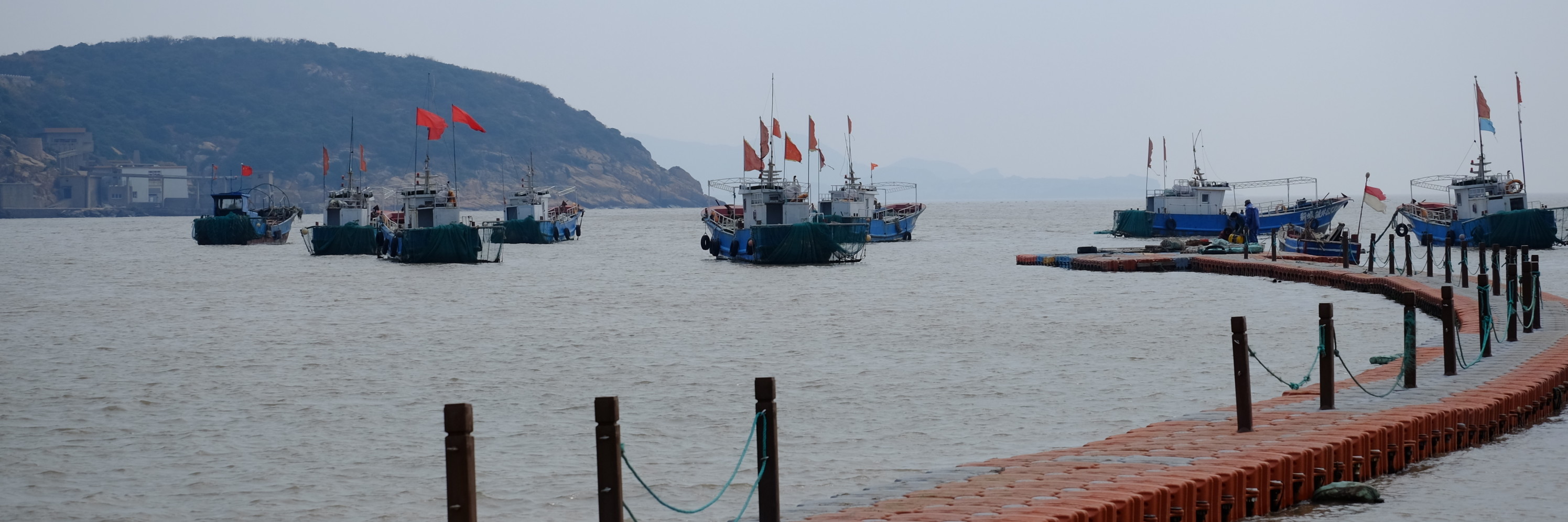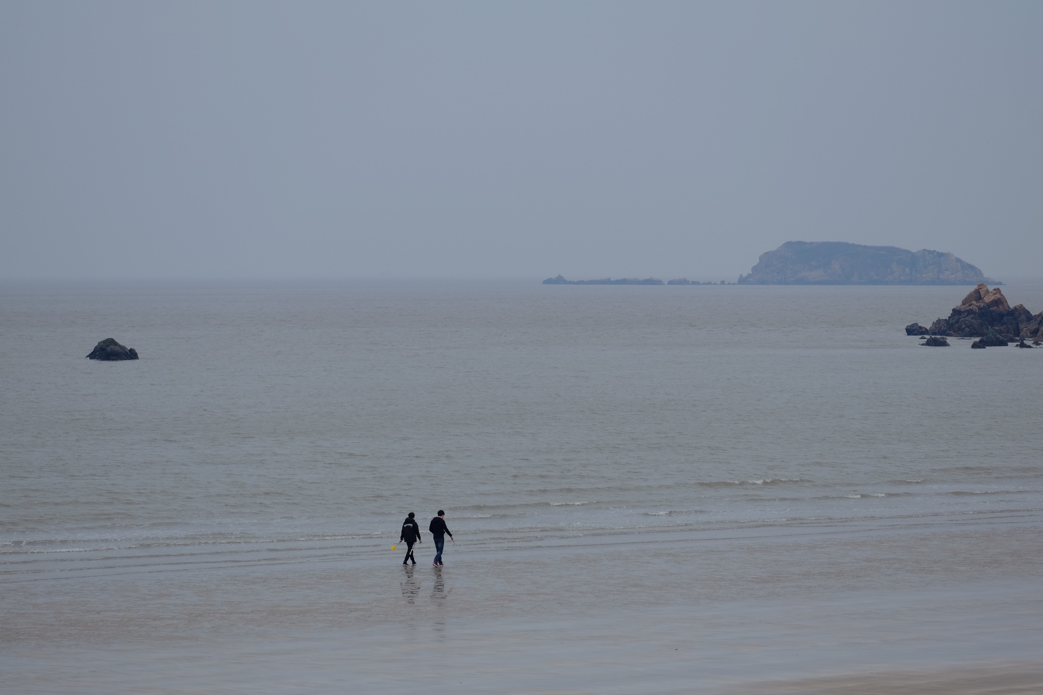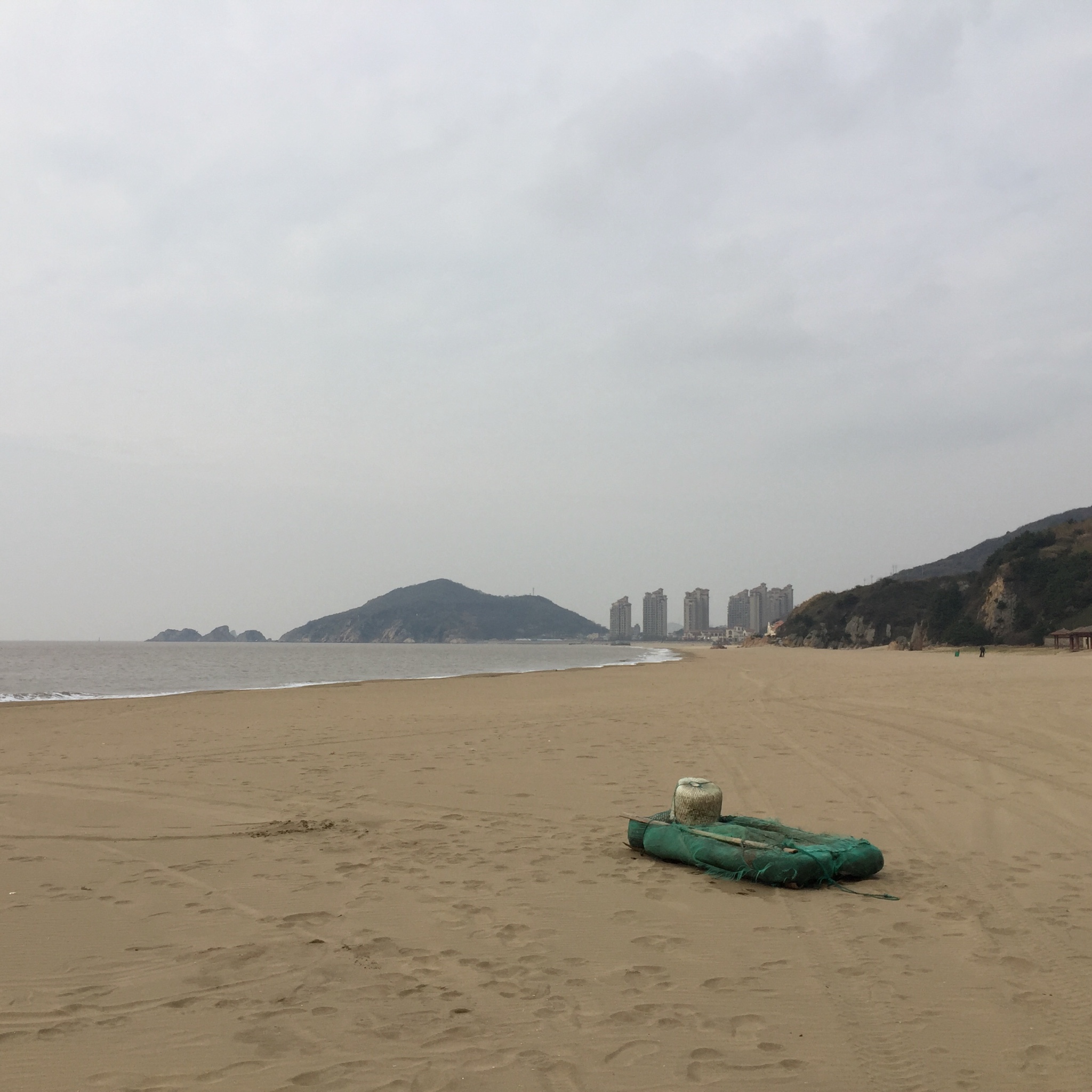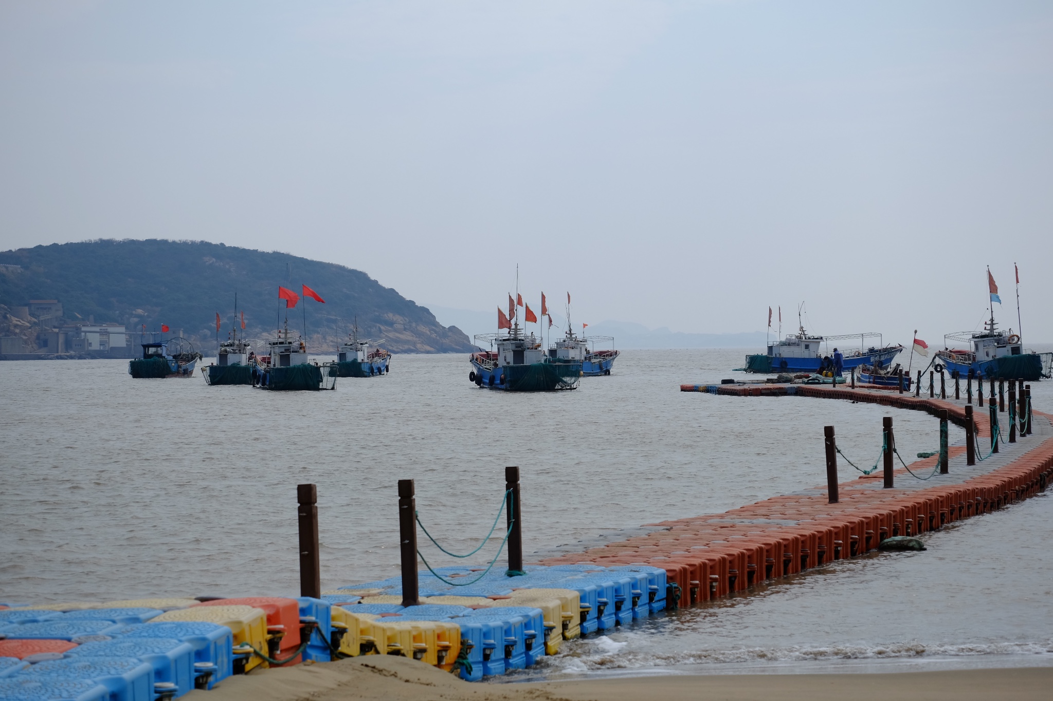 沙滩边上的渔船。早上十点多的时候出了一会儿太阳,能见度稍微好了一些。