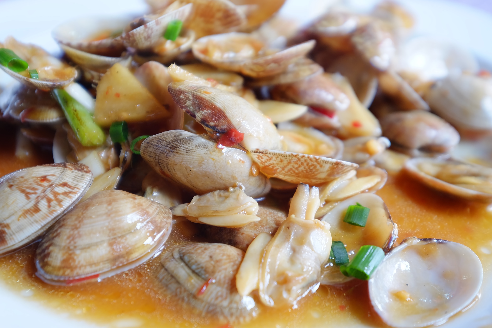 我们去用餐时,餐厅里空无一人,王经理亲自招(报)待(价)。店里这个季节并没有活蟹,只有冰冻的,我对冰冻的蟹非常不感冒,于是点了葱油虾作为葱油蟹的替代品,结果没有想到虾也没有,于是王经理邀请我们去内厨点菜,并且表示我们的厨房是整个岛上最吼的最干净的。最后点了葱油花蛤来弥补没有葱油蟹葱油虾的遗憾。