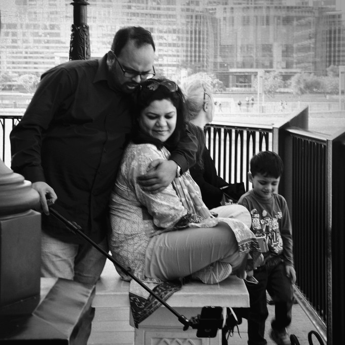 花十分钟横穿商场,出一侧门,来到人工湖上的精致白石桥。