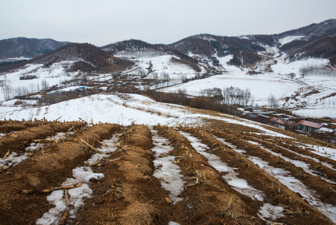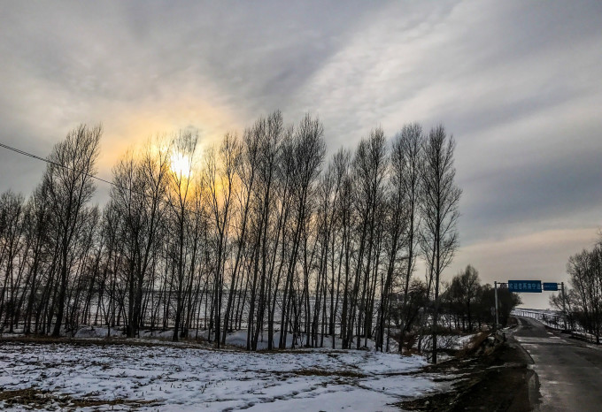 趁着吃饭时间间隙,迅速爬上山坡,拍了几张村庄的全景,没想到黑土地的松软,加上雨雪的湿润,回家鞋子都够你洗好久!