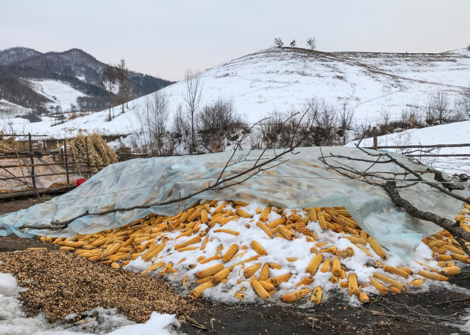 按照约定的行程,走,去东北的农村,去朋友家,闯关东的后继,东北的农村很难见到两层的楼房,可能是为了考虑到暖气原因或者其他因素,房前屋后堆满了玉米,这是他们的收成,据说一年种10万斤玉米,每斤0.3元出售约3万元,除去肥料等就是收入了!