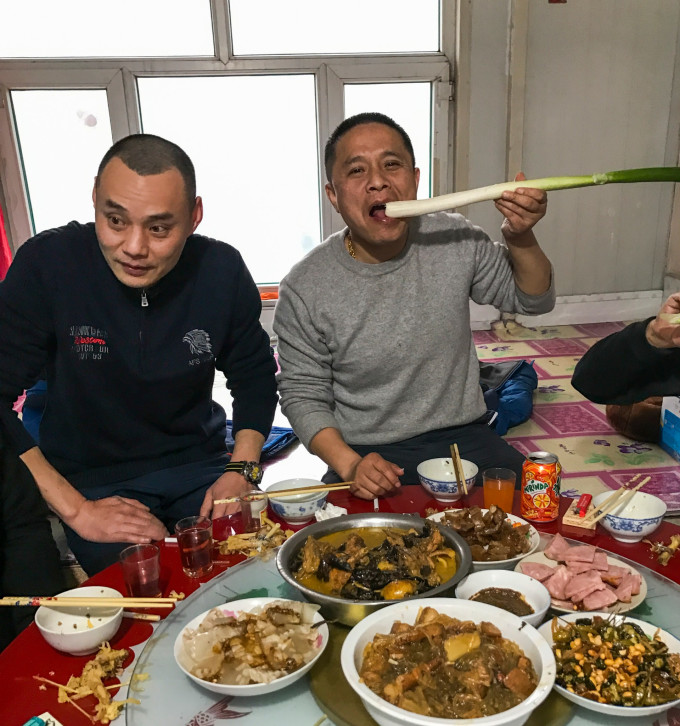 兄弟们!小酒搞起来!气氛搞起来!小鸡炖蘑菇(这可不是小鸡哦!大叔把家里的5斤多重的母鸡炖给我们远道而来的客人),猪肉粉条、凉皮、冻肠.......地地道道的东北味,伴随着庞龙《家在东北》个个喝高了,嗓门也响了!南方人的豪爽不亚于东北汉子
