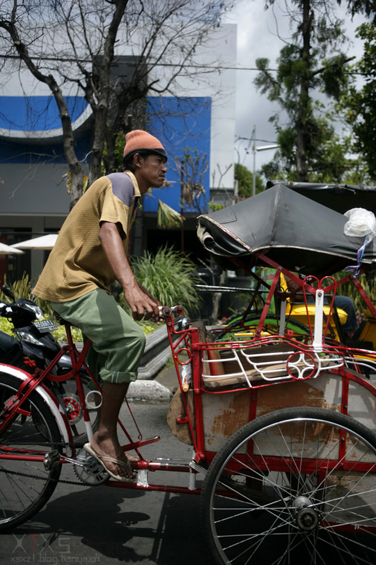 4.对于日惹 ,印象最深就是这种随处可见的人力三轮车,它是反过来骑的。