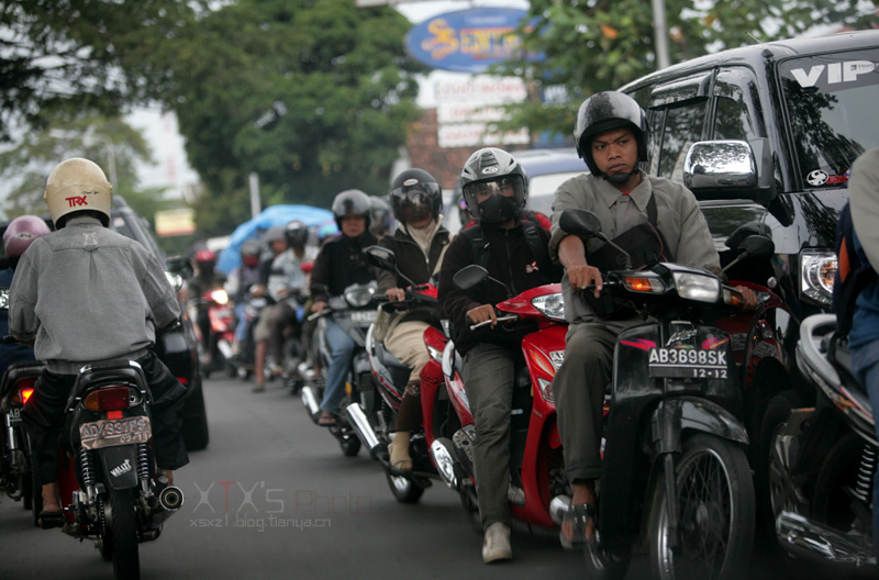 8.那边的街头,比人力三轮车更多是摩托车,摩托车在印尼的所有城市都多,情况应该就象中国 以前的自行车