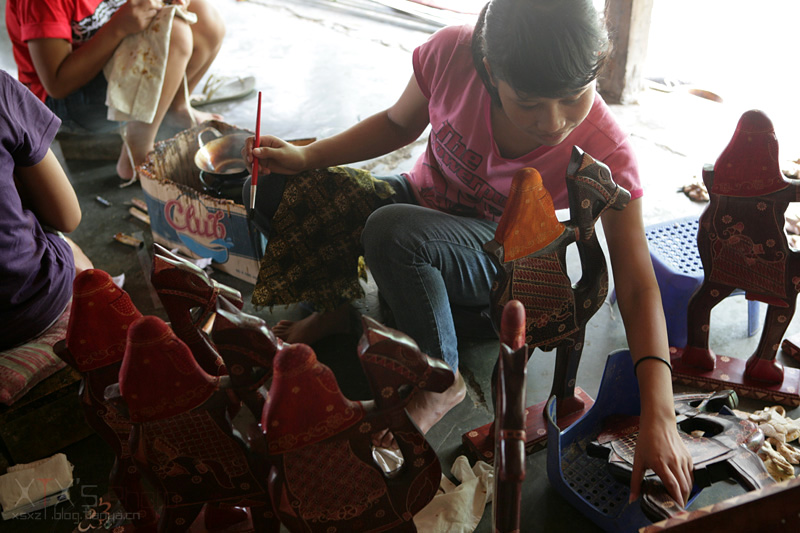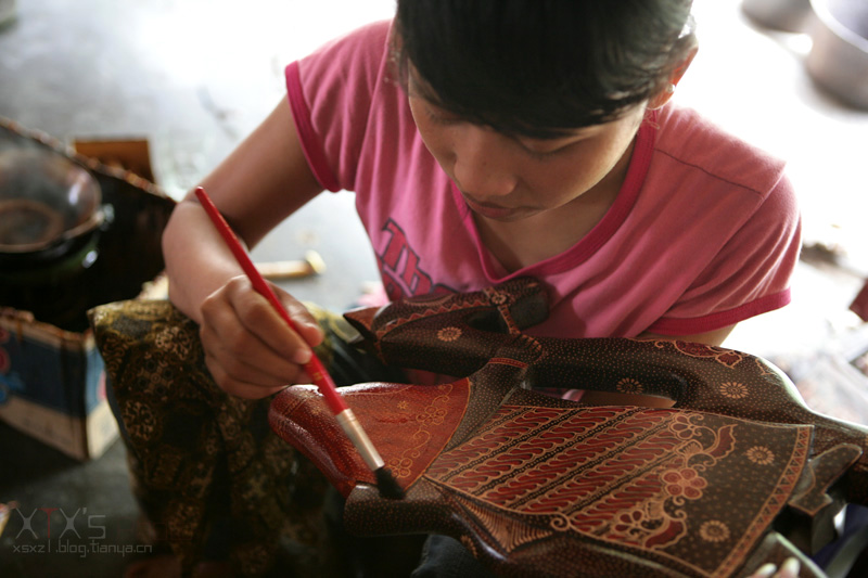 20.蜡染木雕,爪洼岛中部一种有名的工艺。据说先是郑和下西洋是把中国 的蜡染布艺流传到那边,然后那边当地人又逐渐把这种工艺沿用到木雕上