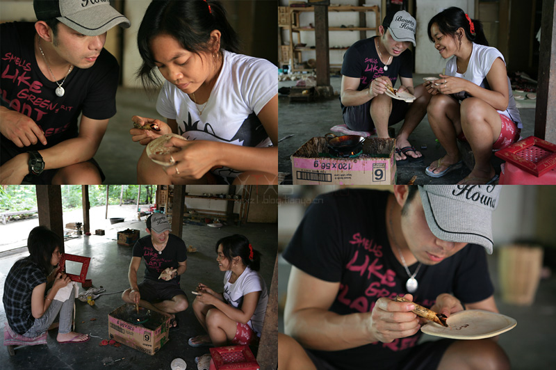 23.试着去尝试,笨手笨脚的笑同学怎么学也是把握不住轻重,全画的歪歪斜斜,呵呵看来要学这门手艺,不住上一年半载的是不成的...