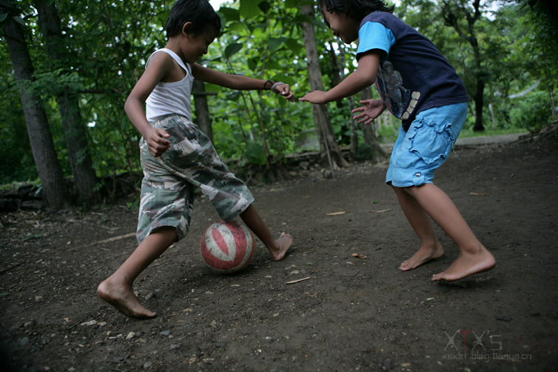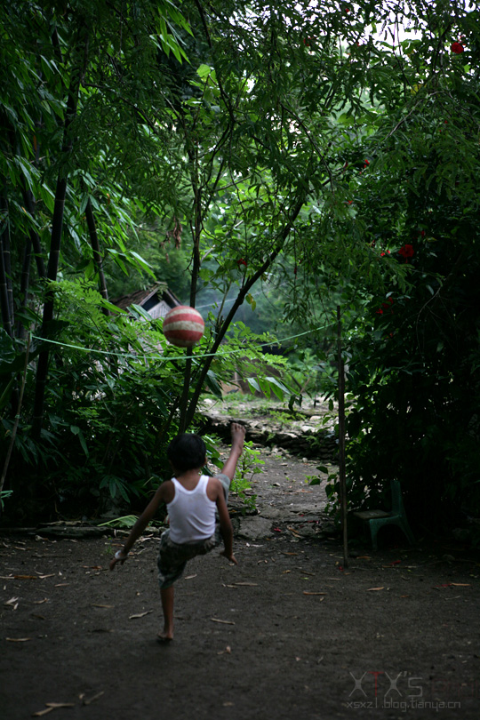 在一个村落,一群小孩子在玩耍,面对我的镜头,他们更显活跃