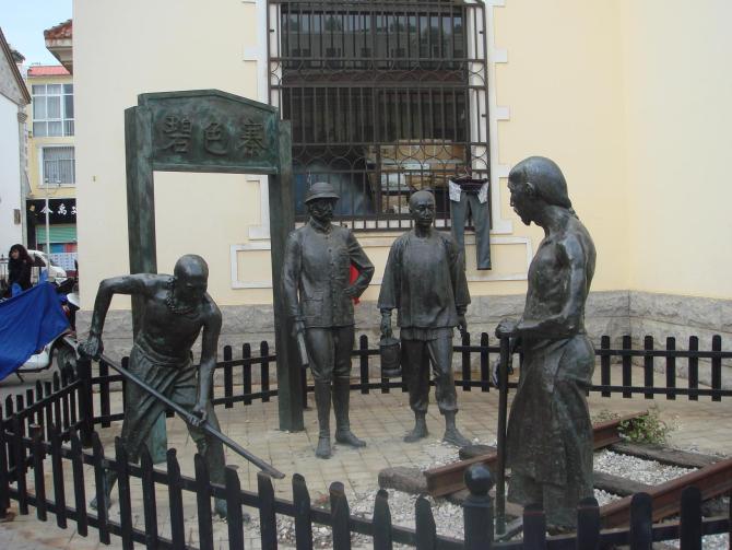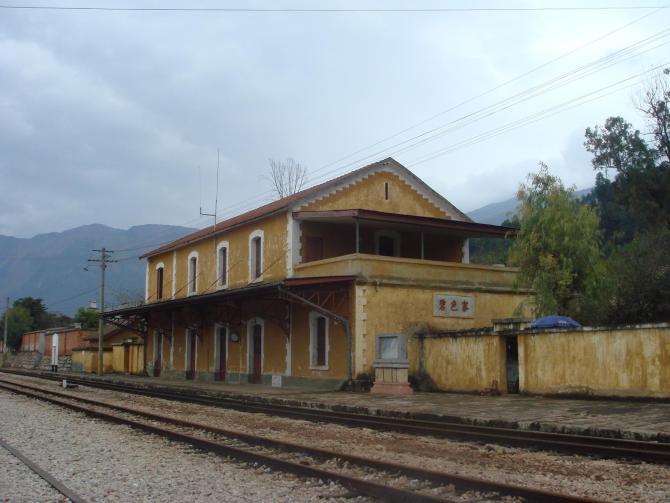 第二日酒店送早,去了一看,是很庞大的一套过桥米线,不愧是过桥米线的故乡。坐公交到老汽车客运站,买了去草坝乡的票,10多公里之后到达碧色寨。书上描写了很多很多,我和老妈到那,总共游览也就10分钟。确实是个小小站,黄色的法式建筑,站台上那个指着巴黎时间的钟和旧式的路灯,这些都是攻略上提醒大家注意的。把这段铁路又来回走了两遍,还看着几节货运车呼啸而过,天气阴冷,我们就回到公路边等回程的车。等了半天,从草坝回来的车都挤得满满的,在碧色寨没有人下,看这情形等一天都坐不上。和老妈商量决定到对面坐去草坝的车,从蒙自去草坝的车,到这里大半都空了,招手就停,等到了草坝终点站,才有座位坐着又回来。事实证明必须这样,7座的面包车,农民朋友们非要挤满10人才走,6公里到碧色寨没有人下车,怎么可能再搭路人,等死都很难等到。