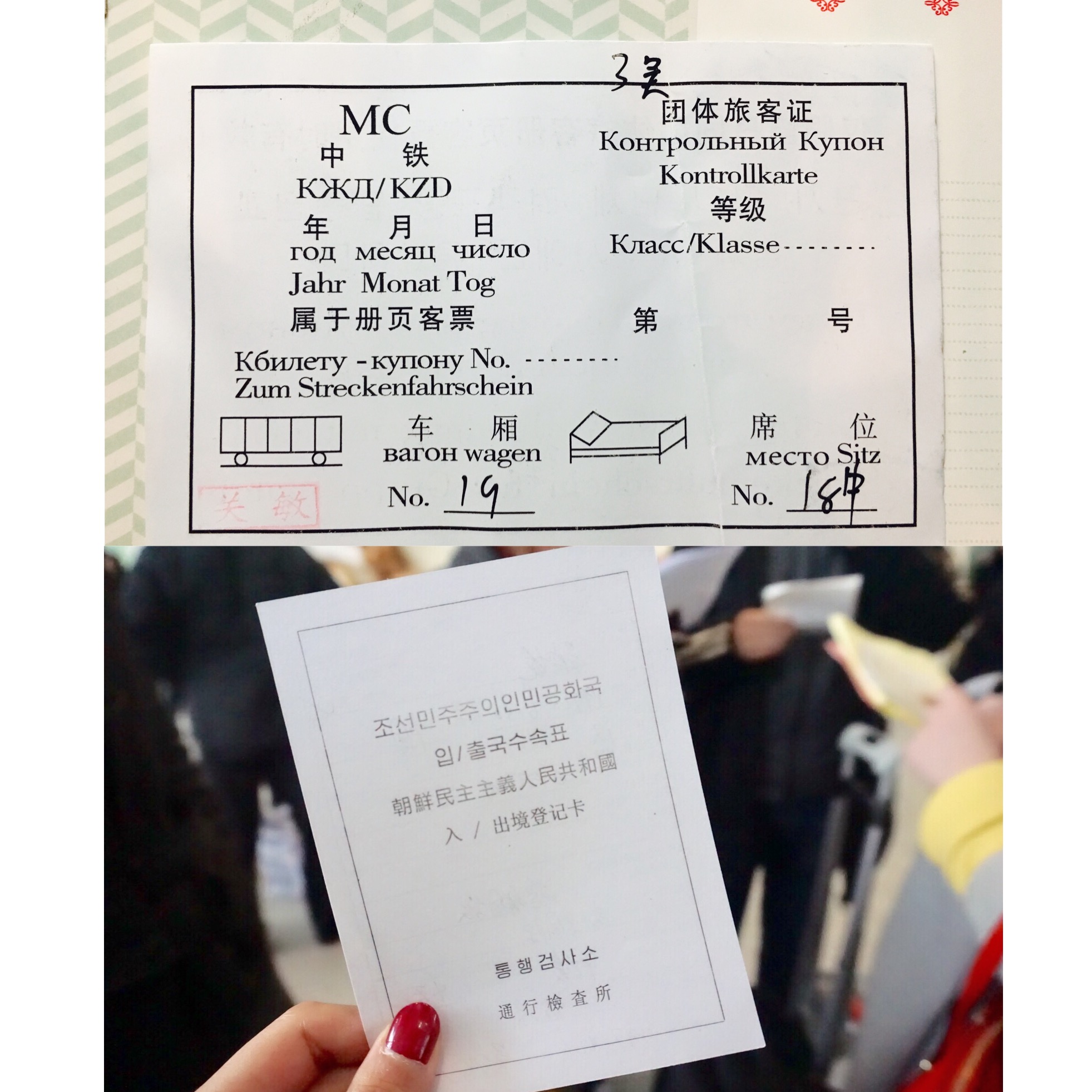 上面这张是火车票,中方导游发的。下面的是出入境登记卡,上了火车自己填写姓名和护照号等基本信息。
