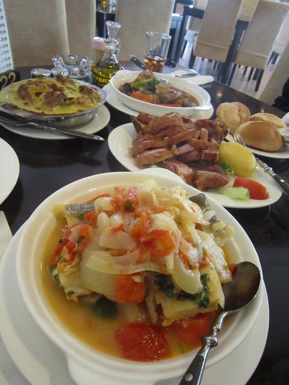 丰盛的大餐,花了470港币。红烩牛尾,葡国鸡,咸猪手,还有马介休 什么,忘记菜名了。对了,搞笑的是,我们想吃的“马介休 ”,原本我们只知道是一种鱼,现在我们知道了是澳门 的一种咸鱼,哈哈。