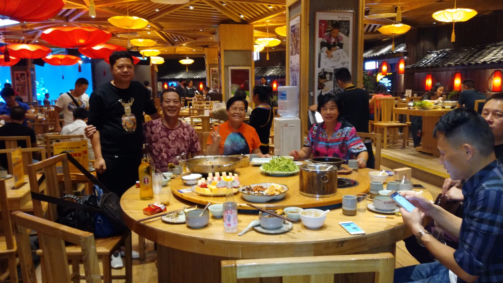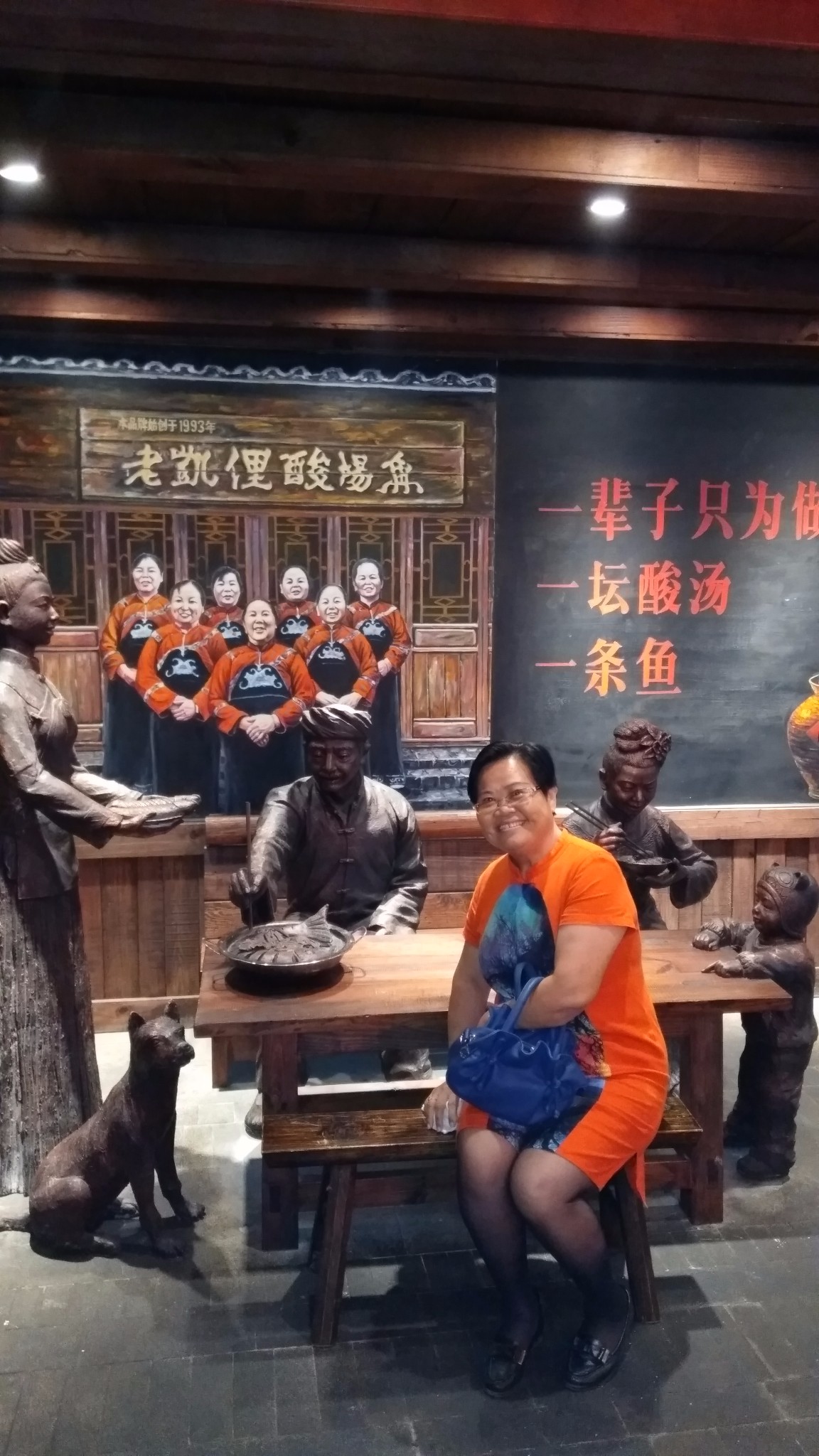 妻子的两个堂兄共同在贵阳开了一家玻璃加工厂。生产真空玻璃和low-e玻璃,年产值有4、5千万。妻子怕影响他们的工作,从香纸沟回贵阳才打电话给他们。堂兄听我们来贵阳,甚是高兴。我们根据他们发的地址很快驱车来到并参观了他们的工厂。晚上堂兄请我们一行人到南明区 龙洞堡云盘古堡山脚兴业西路“多彩贵州文化创意园”内老凯俚酸汤鱼民俗村品尝贵州美食。店规模很大,装修别具民族风格。堂兄殷勤好客,点了各种美食佳肴。堂兄住在贵阳的花果园小区,这是一个超级大盘,房价可说也是超级亲民。吃完饭又到堂兄家玩了一会,然后告辞回了酒店。临行前堂兄再三交代明天陪我们去青岩古镇玩。