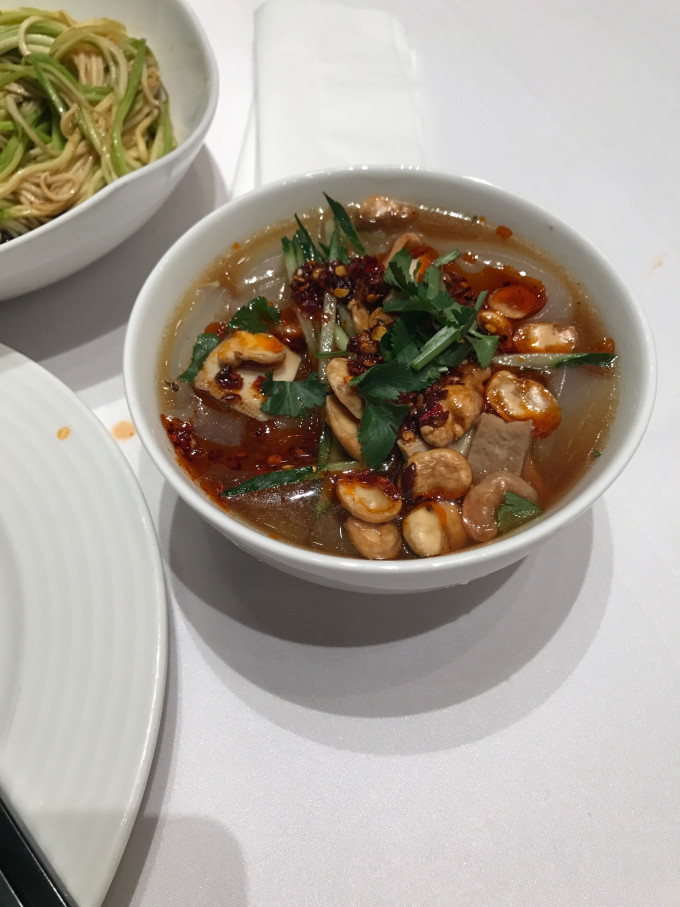 这个就是凉粉,因为延安,榆林我也去过,发现山西北部,陕西北部都爱吃凉粉啊,鱼鱼啊之类的小吃。味道很不错,辣度适中,汁水很足,凉粉爽滑,配以蚕豆瓣香脆的感觉。一个是q弹,一个是香脆,不同口感间的碰撞!美哉。。。。。。。。。。我好像是美食节目的