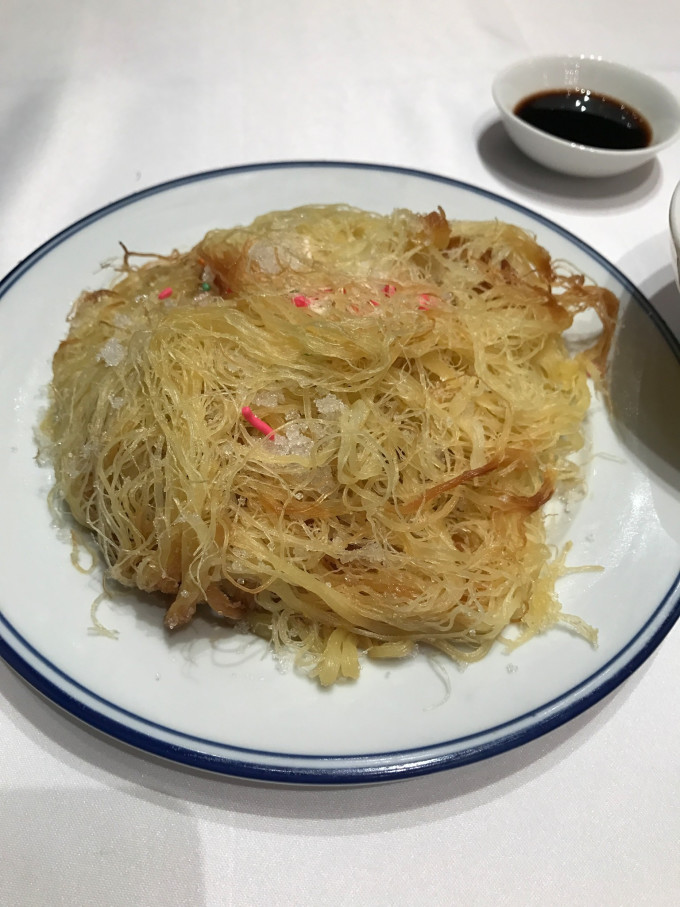 这道是个甜口的,其实就是面的丝丝蒸起来过油撒糖的,很好吃,管饱的东西。