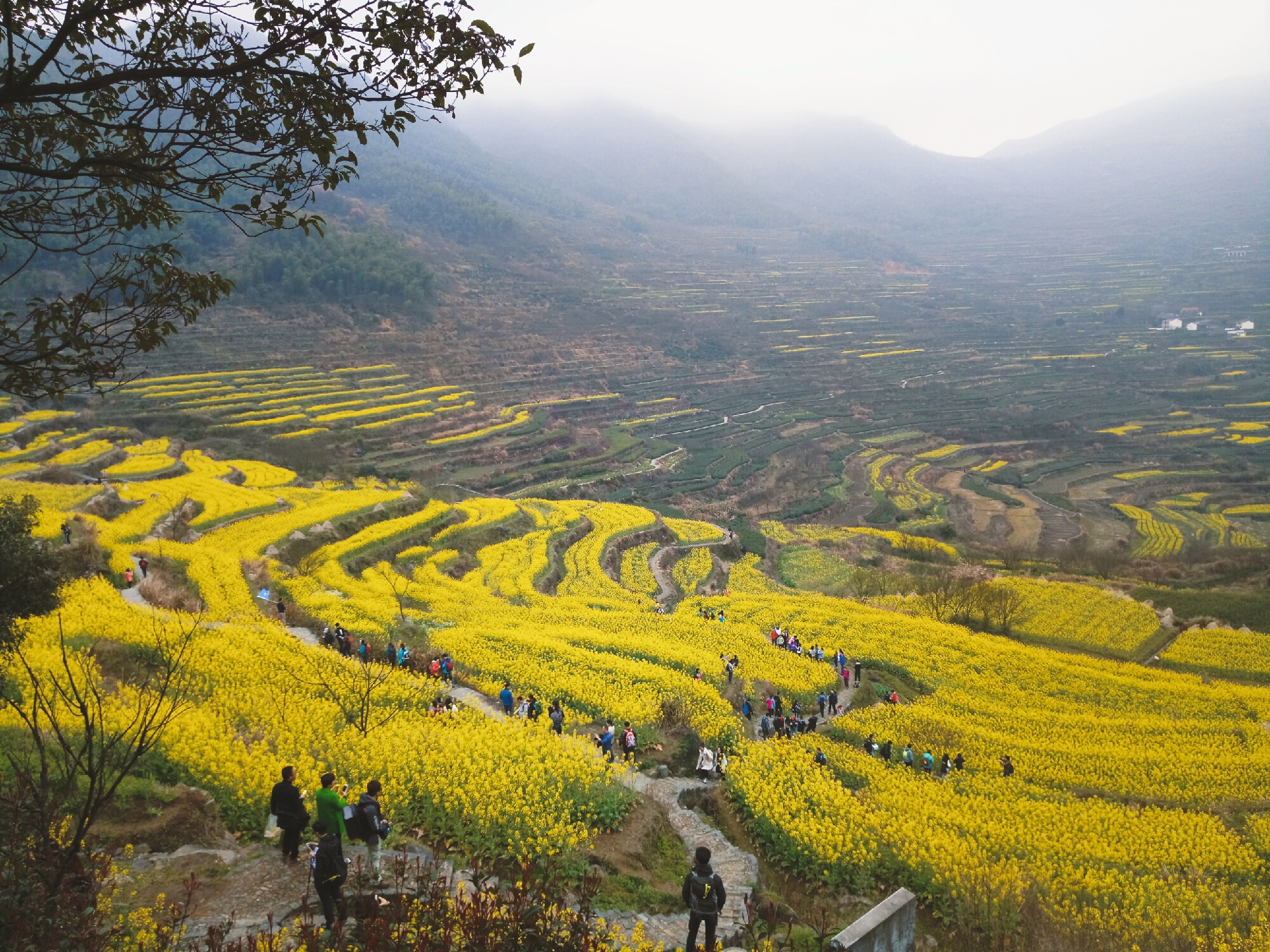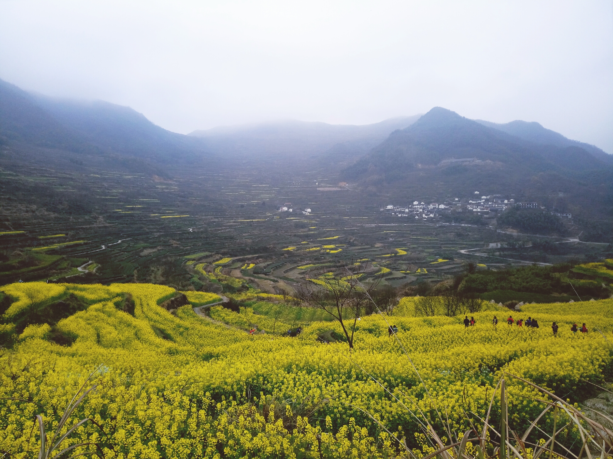 赏梯田油菜,登雾中高山