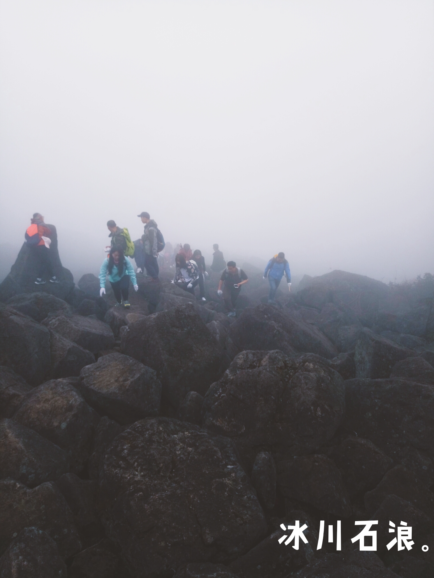 终于到达了半山腰的一个小亭子,那里是第二站——冰川石浪的起点。终于看到我可爱的大部队了,要哭出来了