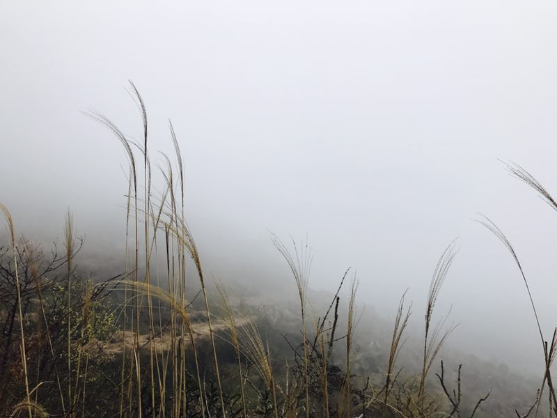 第一段路到达的一块平地,因为海拔低雾气还没有这么重,不过这时已经离那片梯田油菜很远了。