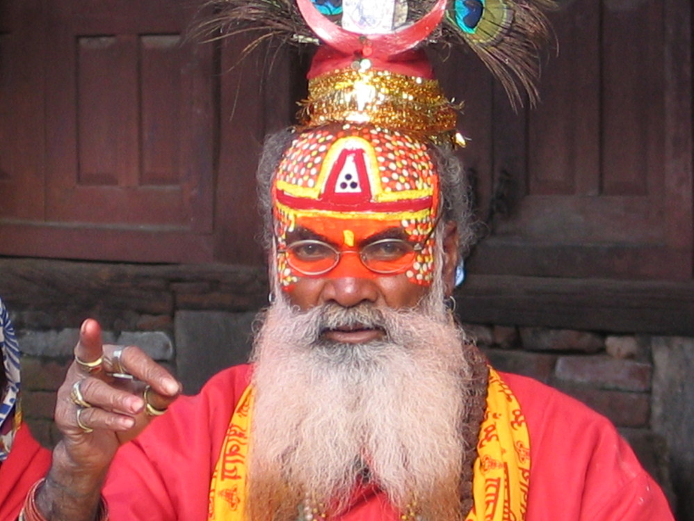 杜巴广场化装的苦行僧,靠与人合影获取布施