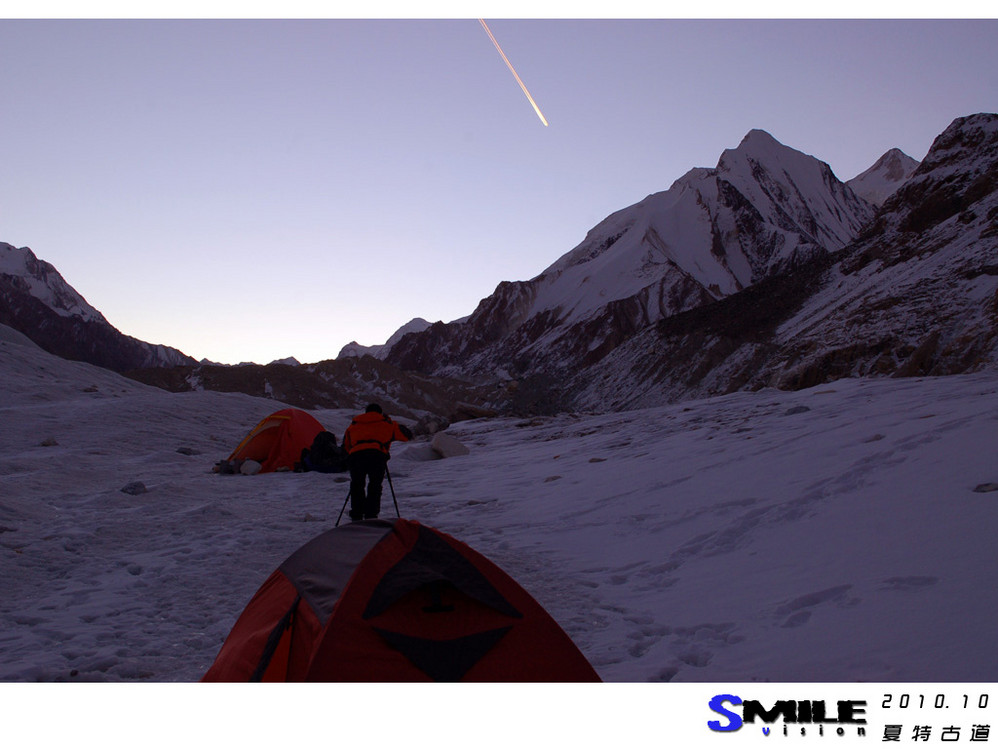 到达营地时天快黑了,别人都已早早的扎营取水,走在最后,再次看到营地夕照的风光。