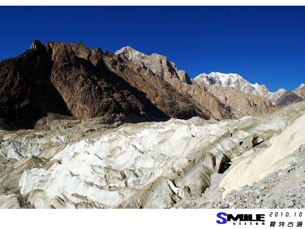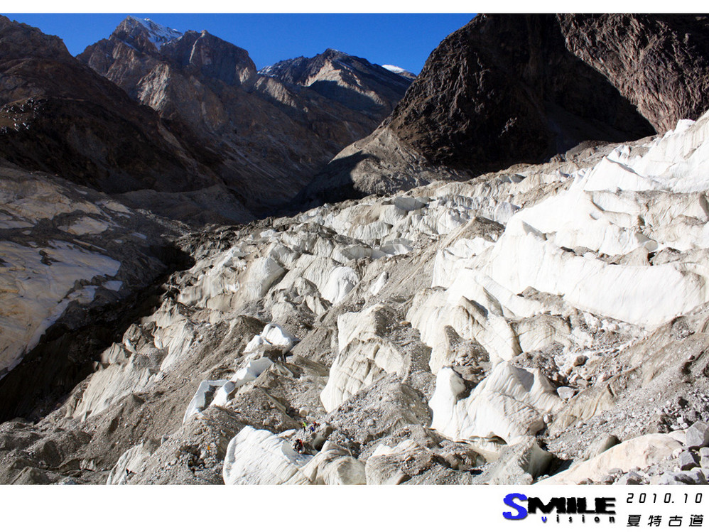 终于来到了木扎尔特达坂,脚下是汹涌的木扎尔特冰川(小蒋摄)
