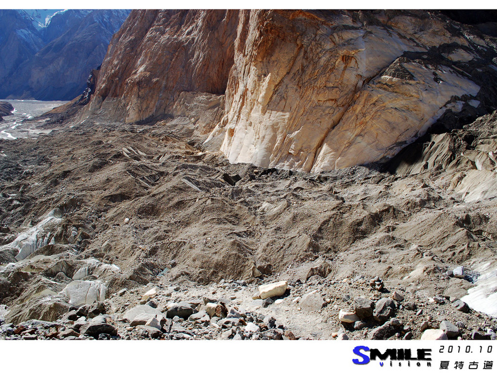跌跌撞撞终于爬上了古栈道,浑浑噩噩中,忘记转身往坡下拍张照片。后来从别人的照片上看到,那陡壁下的滚滚冰川,气势无比。
