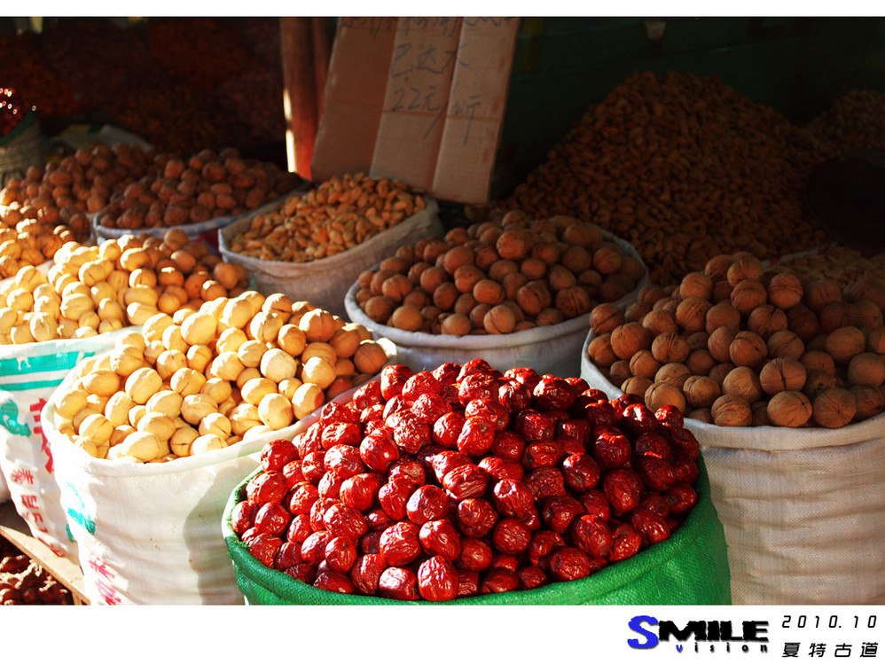 北园春的水果批发市场,第一次看见如此大的新疆 大枣,火红的颜色和硕 大的个头,充满喜庆