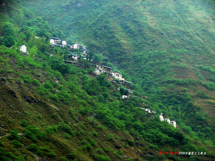 洒落在陡峭山坡上的村寨——大峡谷中难有平地