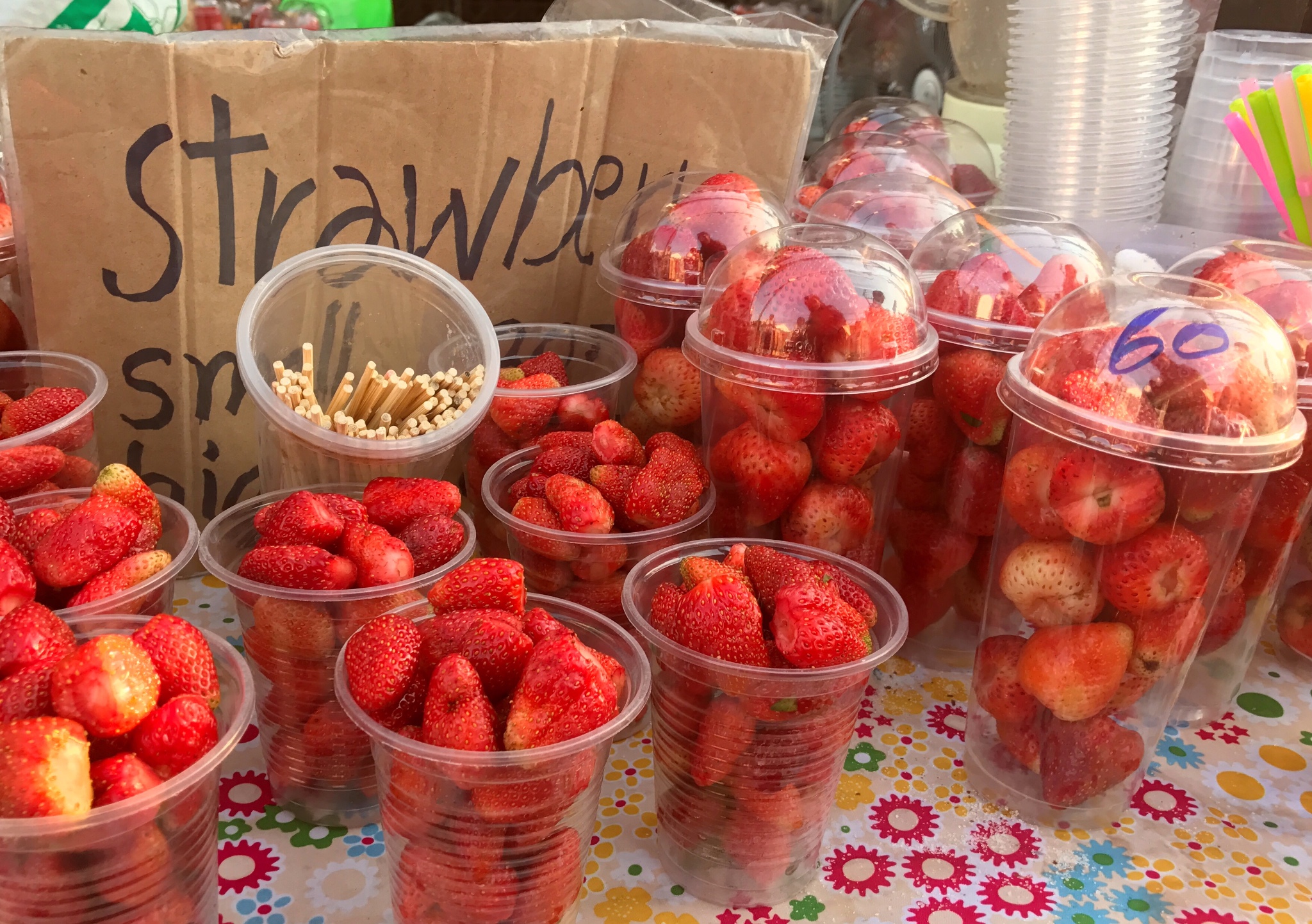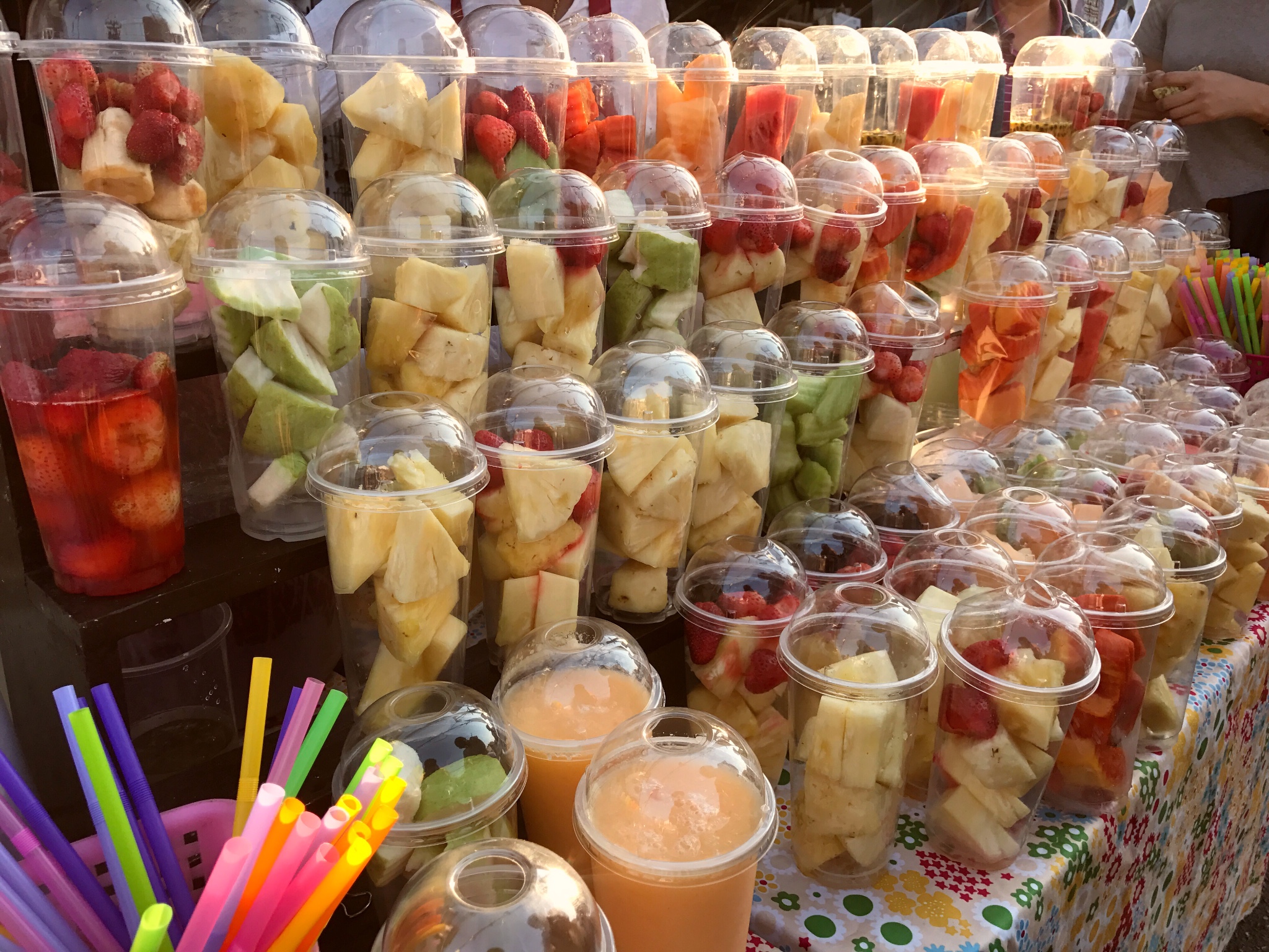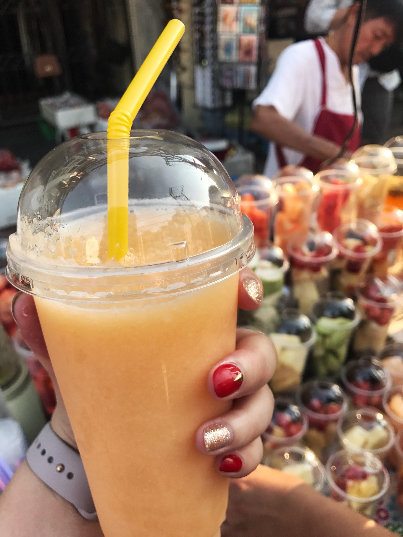 逛完了boots,夜晚终于降临,夜市已经开始人声鼎沸。来一杯物美价廉的水果冰沙,哈密瓜冰沙鲜选鲜榨,应季的草莓或者芒果,水果真的好甜好美味。