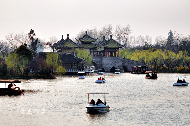 进瘦西湖,就是一个经典的景点—长堤春柳,倒挂的垂柳让人赏心悦目。