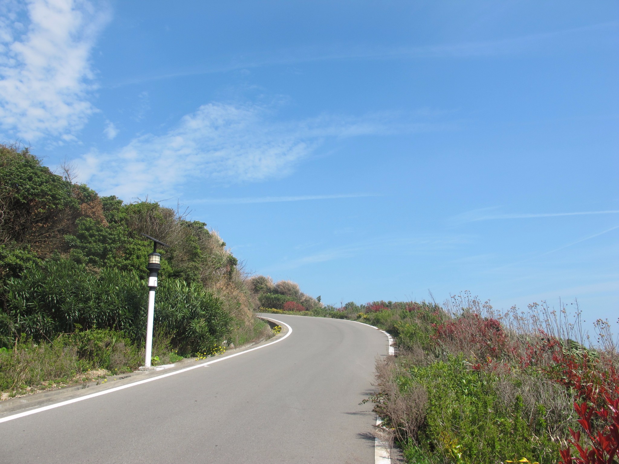 在海滩旁边有一条上坡的小路,直接通向岛上最长的盘山公路;