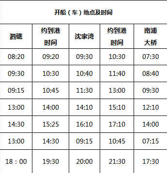 班次:时间表见下图,会根据不同的天气原因有所调整,需要密切关注嵊泗政府网站。
