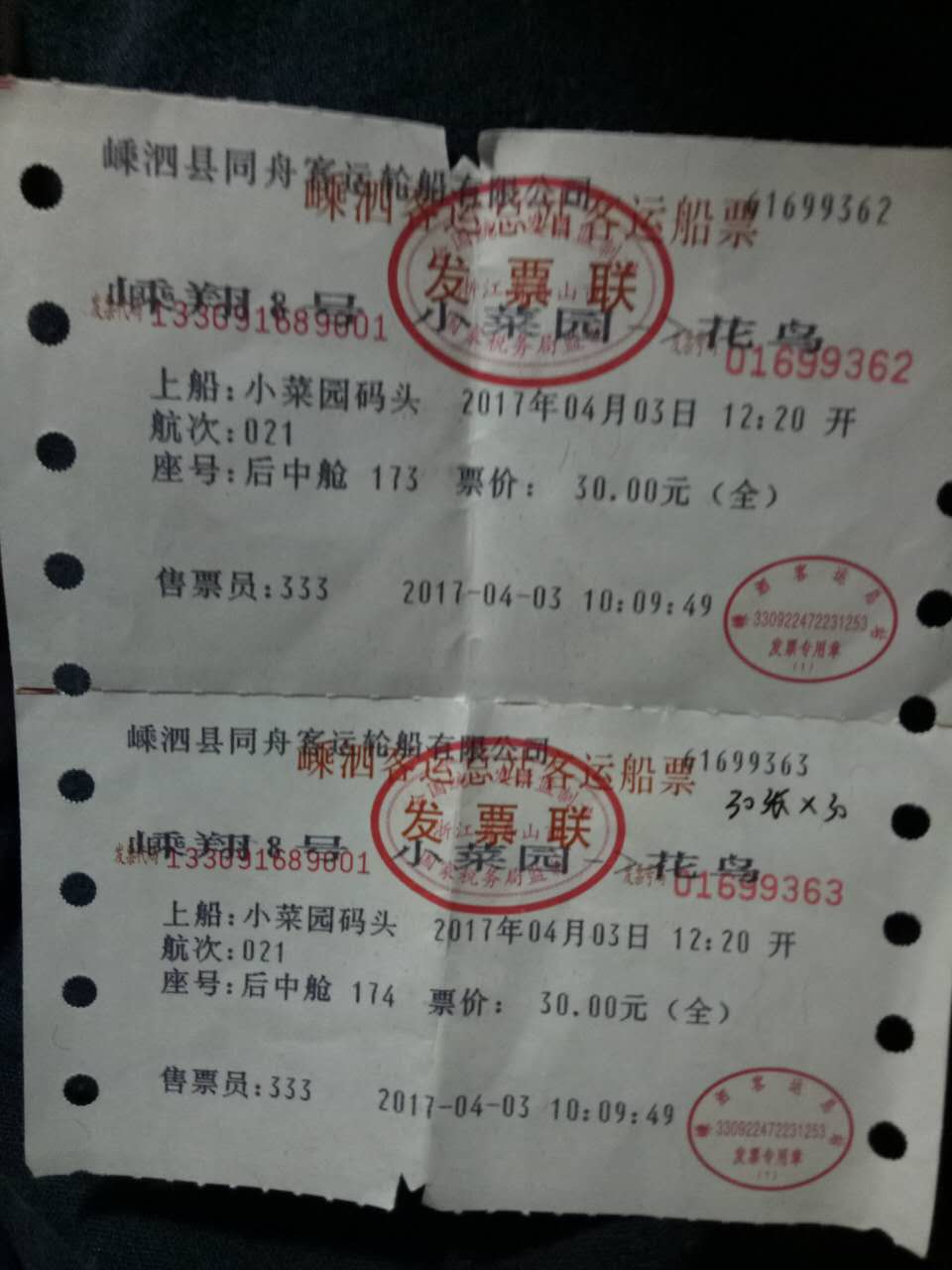 ②买票:从嵊泗前往花鸟岛的船票是以岛上本地居民为先,如有剩票才会出售给游客,在开船前十分钟开售游客票,票价为30元一张,售完为止;建议在到达小菜园码头后随即排队,因为越是后面排,买不到票的可能性越大;在网上也没有预订预订;因为排队会消耗时间,可能没有办法吃饭,当然你可以在排队时用饿了么叫外卖;