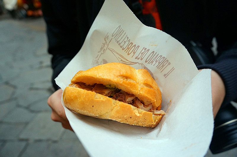 附近就是网上评价很高的意大利有名的牛肚三明治餐厅,我慕名而去,,这家三明治餐厅用的佛卡夏(Focaccia)面包非常香,小小的店面里经常是排长队的~