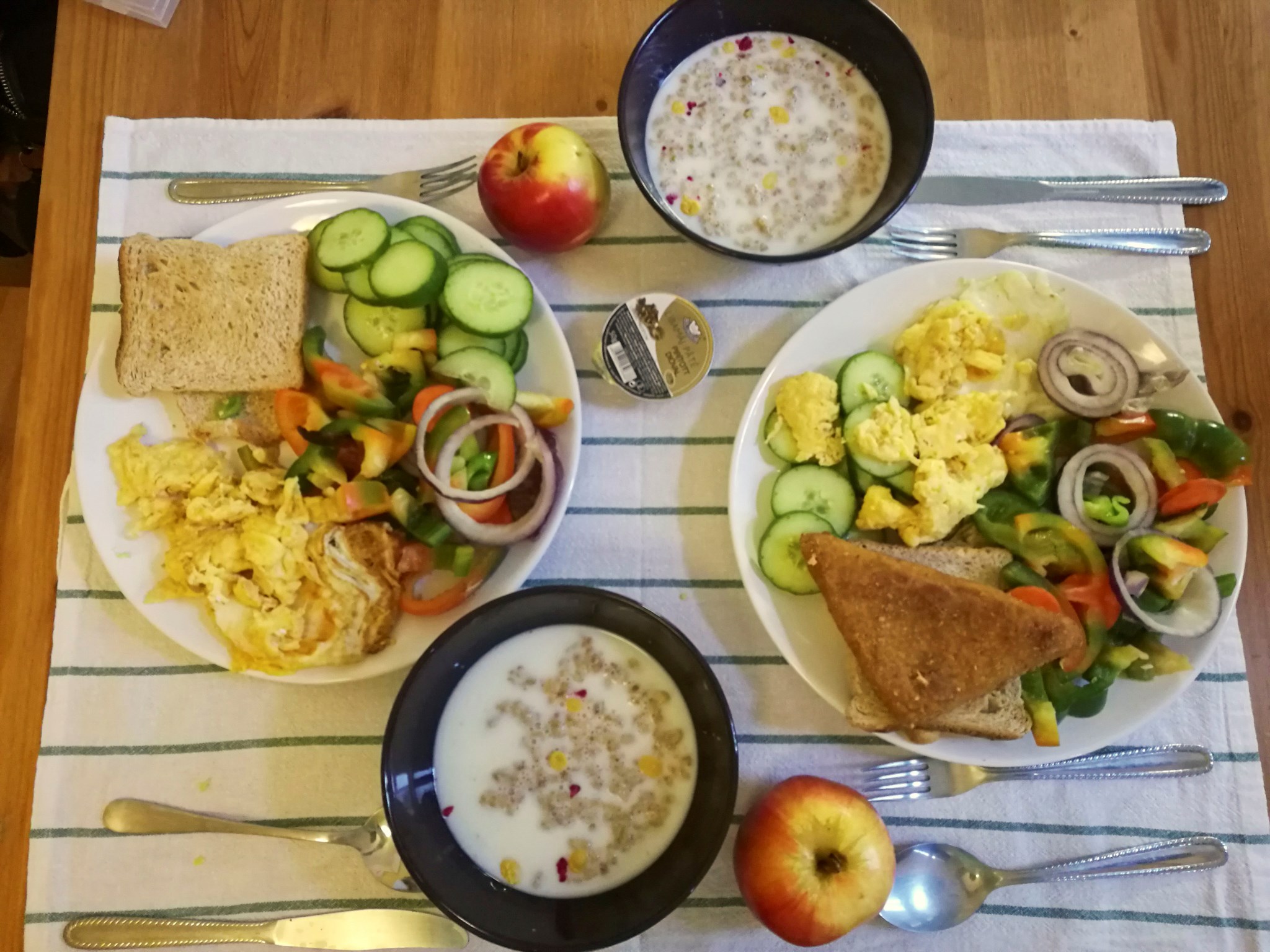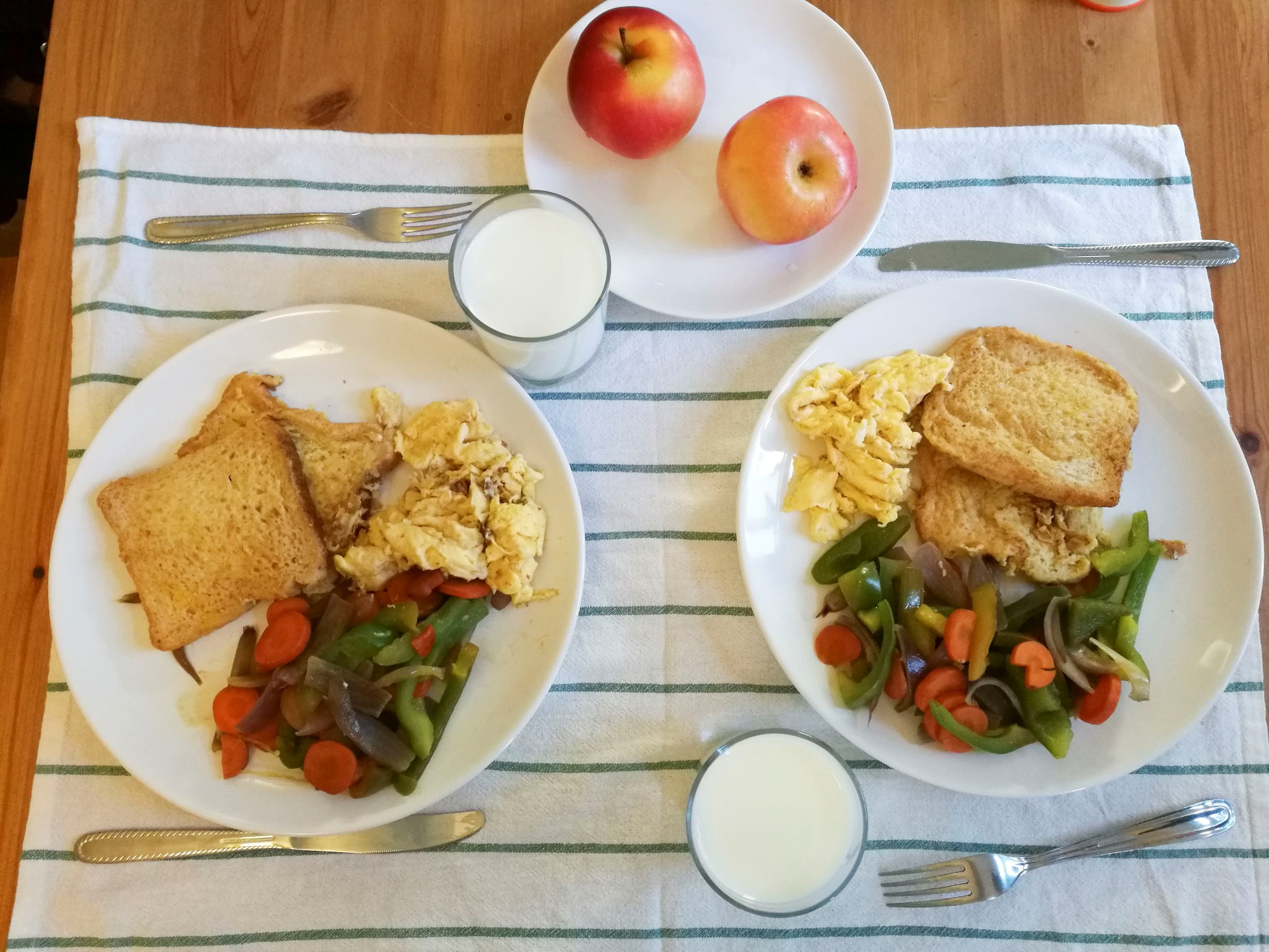 得“小厨”雅名是因身兼此行的烹饪担当,以下几张照片可以看出,胡小厨注重的是颜色与营养的搭配,准备的都是早餐和简单意面,所以是小厨而非大厨。
