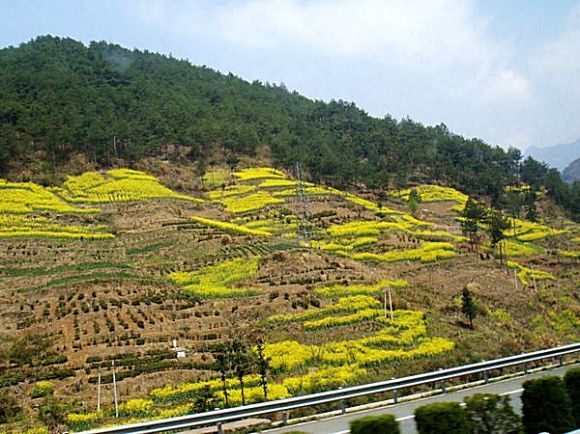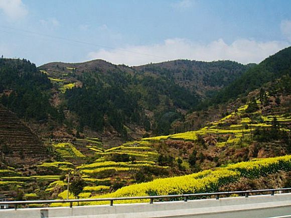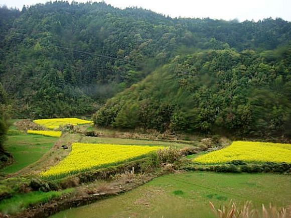 4月3日是一个雨天,从上海到婺源,一路进入江西界后,风景就很不错,山坡上开满了金灿灿的油菜花。