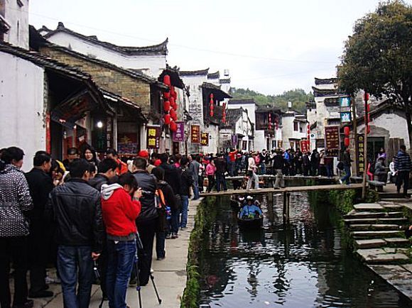 之后车子就一路堵着,最后无奈,下车用走的,导游已经不知去向,跟着大队的人流进到了李坑。