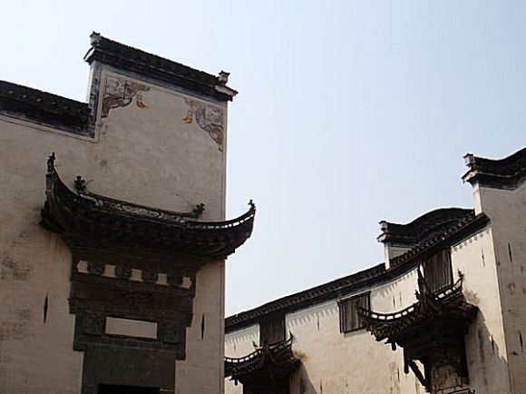 这里的建筑都是典型的徽式建筑,屋顶非常有特色。