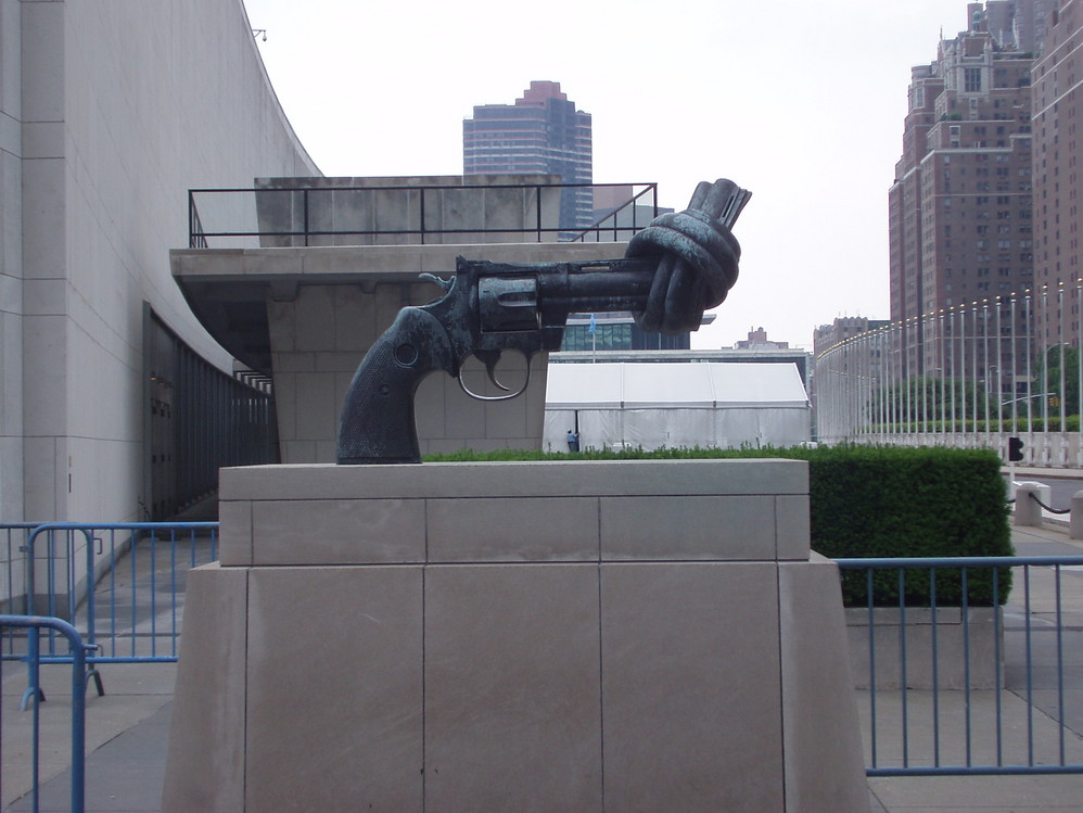 联合国前,象征和平。