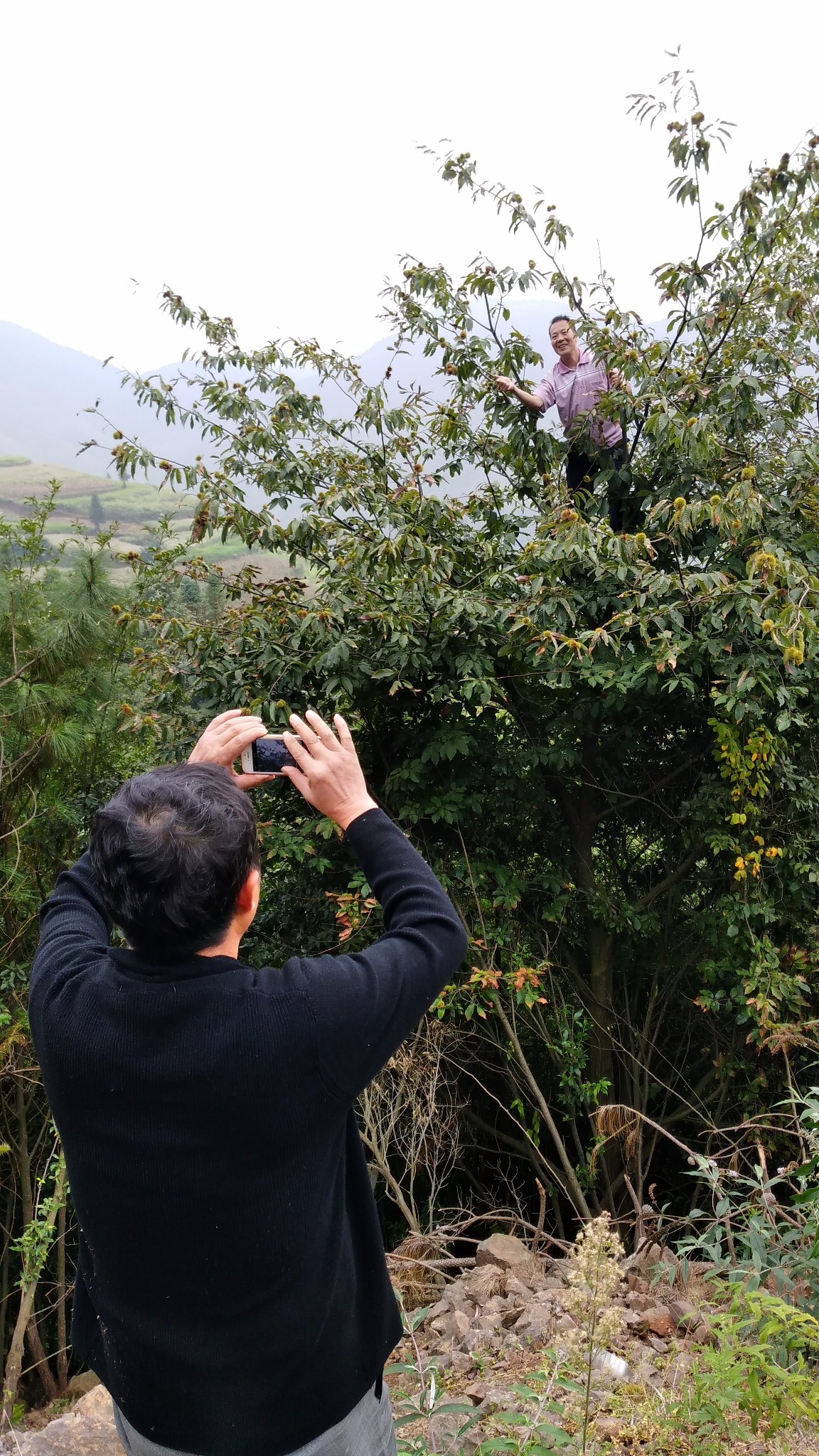 火铺镇海拔2000m左右,与云南富源县接壤。火铺天然杜鹃花森林风景区是一个天然原始混交杜鹃林和人工松杉林为主的风景区,但杜鹃花的花期在3至5月,秋季已观享不到杜鹃花了。但去秋季的山野采秋对于我们这些久居都市的人来说却是一件非常有趣和快乐的事。摘野栗子、采蘑菇、摘野果、采野菜等等。老板娘的院子里堆了很多尚未脱粒的玉米,无聊时我们帮她掰玉米。我们还从镇子的集市买了很多菜,自己动厨,车上有酒,邀请老板娘和她老公和我们一起在这僻静的山野小店品尝美酒佳肴,还真有一番情趣。
