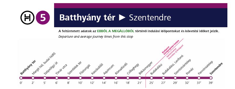 1) H5:在Batthyany Ter换乘,去往Szentendre;
