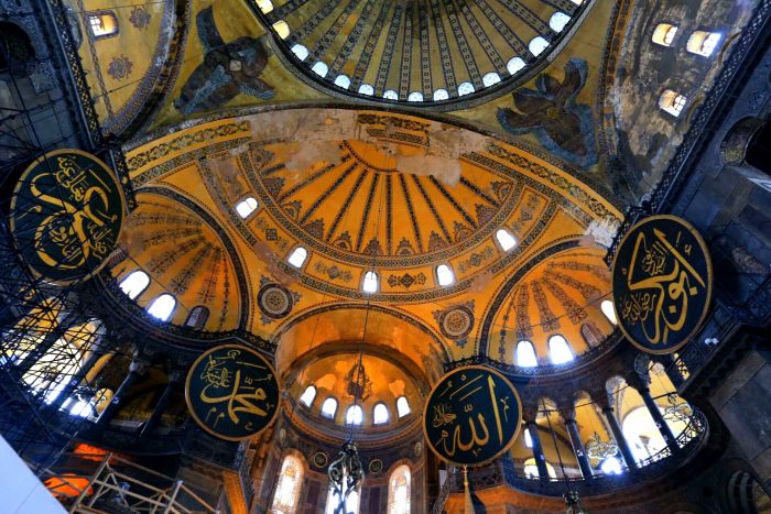 在古城伊斯坦布尔-索菲亚大教堂瞻仰拜占庭时期的精美艺术