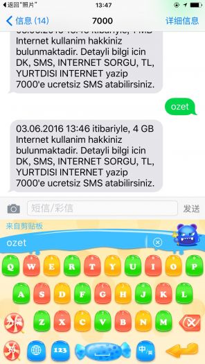 3.超过了免注册试用期后,你的手机将被锁,但是这个“手机被锁”只是说你这个手机不能再用土耳其的手机网络了,但是同一张卡可以换到别的手机上使用的,而你这一部手机回国后照样是可以用的。朋友借我这张卡就超过2个月了,但充值后一样可以使用呢~