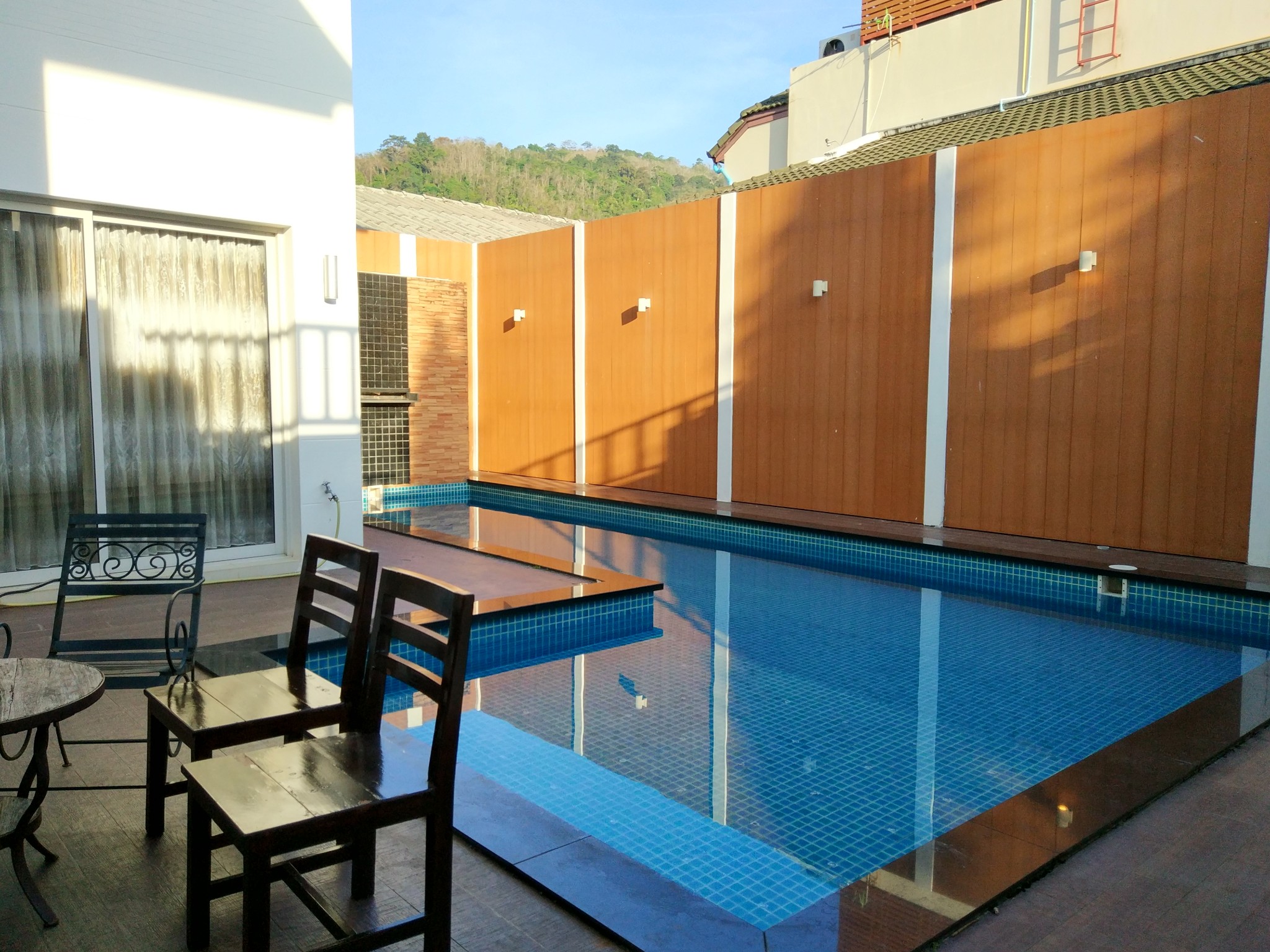 住宿方面:前两次都是住酒店,所以不想再住酒店。再就是感觉孩子住酒店还是有点不自由,而且不能单独给孩子做饭。这次就让在普吉的朋友帮着订了一套带泳池的别墅。