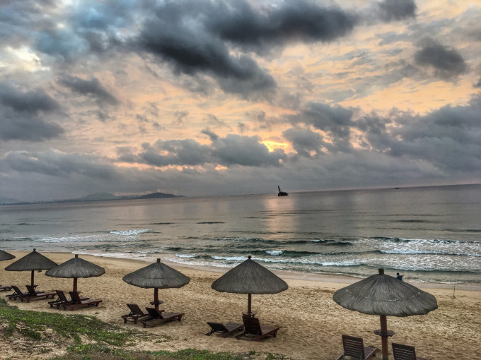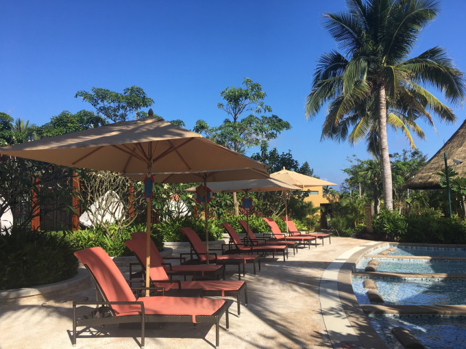 在房间俯瞰酒店泳池,还有远处的海景!惬意之!